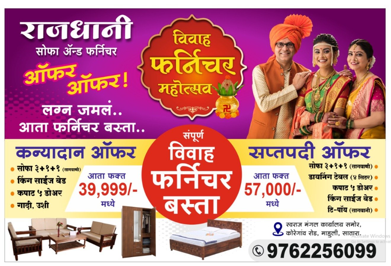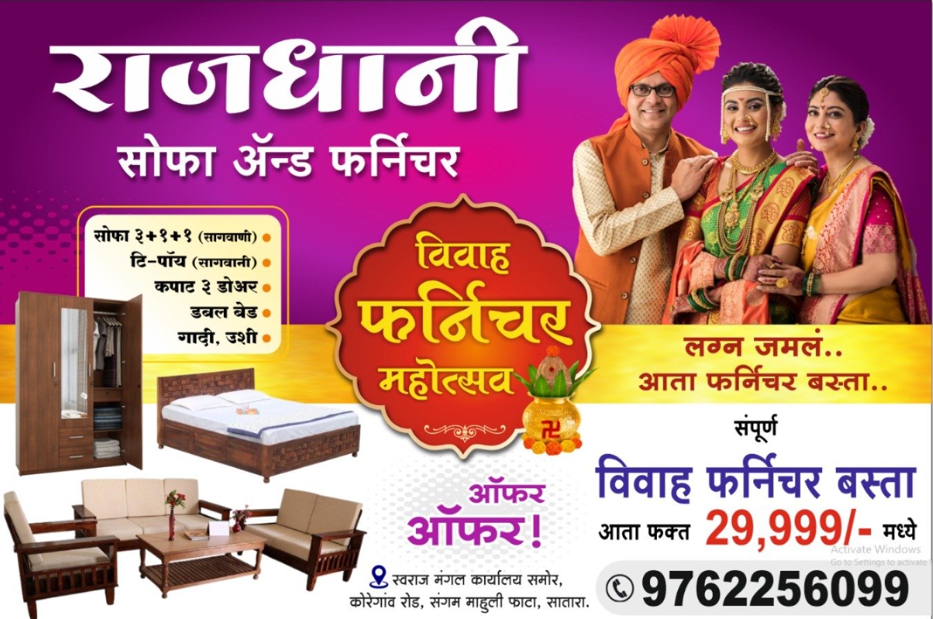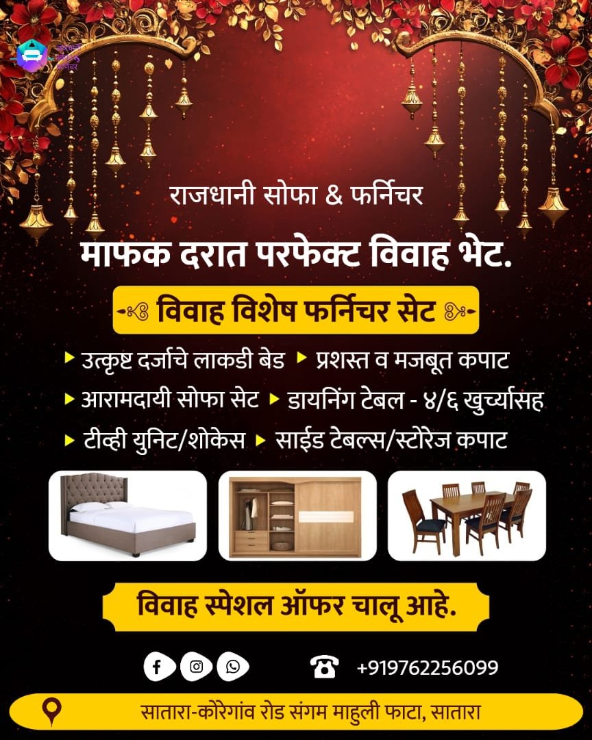 बेस्ट क्वालिटी बेस्ट सर्विस विनम्र आणि तत्पर सेवा ब्रँडेड आणि क्वालिटी मटेरियल हजारो समाधानी ग्राहक ऑर्डर प्रमाणे फर्निचर तयार तसेच बनवून मिळेल. सोफा मनुफॅक्चरींग हायवे लगत भव्य दालन एक वेळ अवश्य भेट द्या धन्यवाद