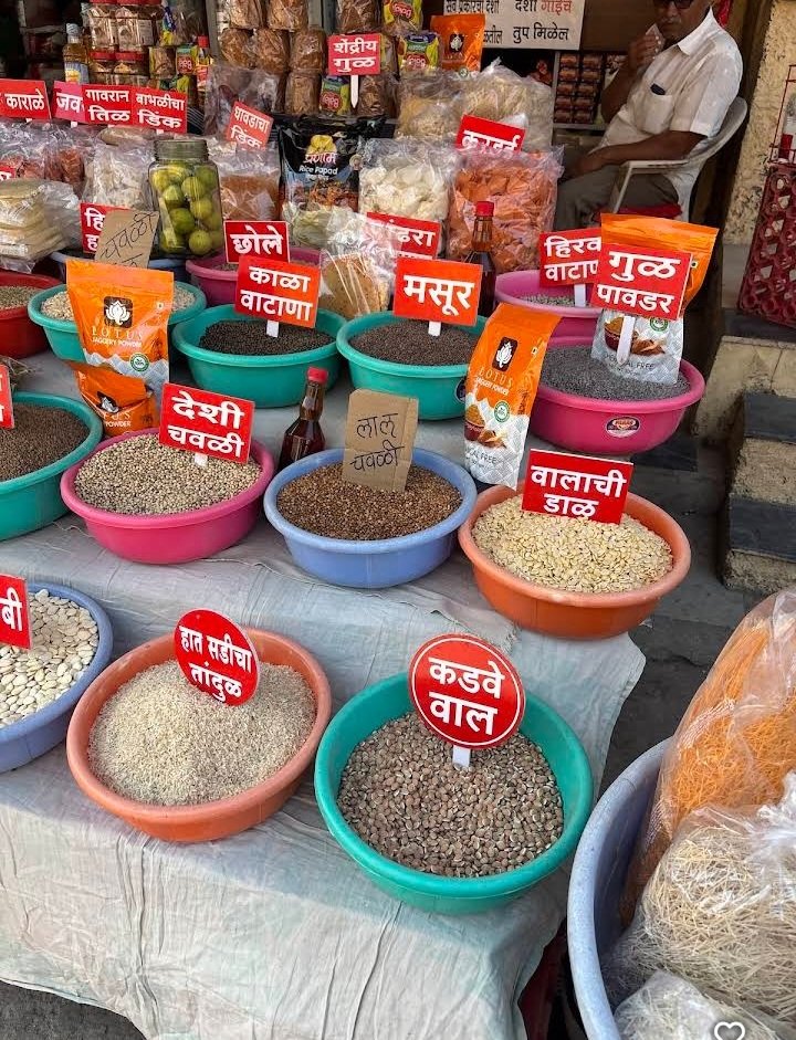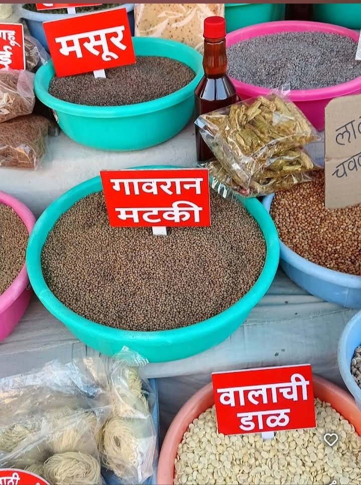 दगडी ज्वारी ,गावरान ज्वारी, खपली गहू, कडवे वाल, नाचणी ,रोहा मटकी, पिवळा मुग, गावरान मटकी, डबडबी, हुलगे / कुळीथ, हिरवा मुग, काळा घेवडा, चवळी, जवस ,काराळे, तीळ ,मोहरी ,राजमा, धावडाचा डिंक, बाभळीचा डिंक, गहू / रवा, शेवई, मॅंगो शेवई स्ट्रॉबेरी शेवई, पायनापल शेवई, श्री चरणी अर्पण करण्यासाठी होलसेल दरात शिधा मिळेल.