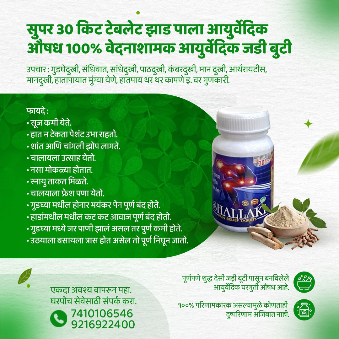ЁЯМ┐ рд╕реБрдкрд░ 30 рдХрд┐рдЯ рдЯреЕрдмреНрд▓реЗрдЯ тАУ рдЖрдпреБрд░реНрд╡реЗрджрд┐рдХ рд╡реЗрджрдирд╛рд╢рд╛рдордХ рдЙрдкрд╛рдп ЁЯМ┐ рд╕рд╛рдВрдзреЗрджреБрдЦреА, рдЧреБрдбрдШреЗрджреБрдЦреА, рдкрд╛рдарджреБрдЦреА, рдорд╛рдиреЗрдЪреА рд╡реЗрджрдирд╛ рдпрд╛рдореБрд│реЗ рддреНрд░рд╛рд╕ рд╣реЛрддреЛрдп рдХрд╛? рдЖрддрд╛ рд╡рд╛рдкрд░рд╛ рдЖрдпреБрд░реНрд╡реЗрджрд┐рдХ рдЬрдбреАрдмреБрдЯреАрдкрд╛рд╕реВрди рддрдпрд╛рд░ рдХреЗрд▓реЗрд▓реЗ рд╕реБрдкрд░ 30 рдХрд┐рдЯ рдЯреЕрдмреНрд▓реЗрдЯ. тЬЕ рд╕реВрдЬ рдХрдореА рдХрд░рдгреНрдпрд╛рд╕ рдорджрдд тЬЕ рдЪрд╛рд▓рддрд╛рдирд╛ рдЖрд░рд╛рдо рдорд┐рд│рдгреНрдпрд╛рд╕ рдорджрдд тЬЕ рд╕рд╛рдВрдзреЗ рдордЬрдмреВрдд рдареЗрд╡рдгреНрдпрд╛рд╕ рд╕рд╣рд╛рдпреНрдп тЬЕ рд░реЛрдЬрдЪреНрдпрд╛ рд╣рд╛рд▓рдЪрд╛рд▓реА рд╕реЛрдкреНрдпрд╛ рд╣реЛрдгреНрдпрд╛рд╕ рдорджрдд ЁЯТп рдЖрдпреБрд░реНрд╡реЗрджрд┐рдХ рдШрдЯрдХрд╛рдВрдкрд╛рд╕реВрди рддрдпрд╛рд░ ЁЯУЮ рдЕрдзрд┐рдХ рдорд╛рд╣рд┐рддреАрд╕рд╛рдареА рд╕рдВрдкрд░реНрдХ: ЁЯУ▒ 7410106546 ЁЯУ▒ 9216922400