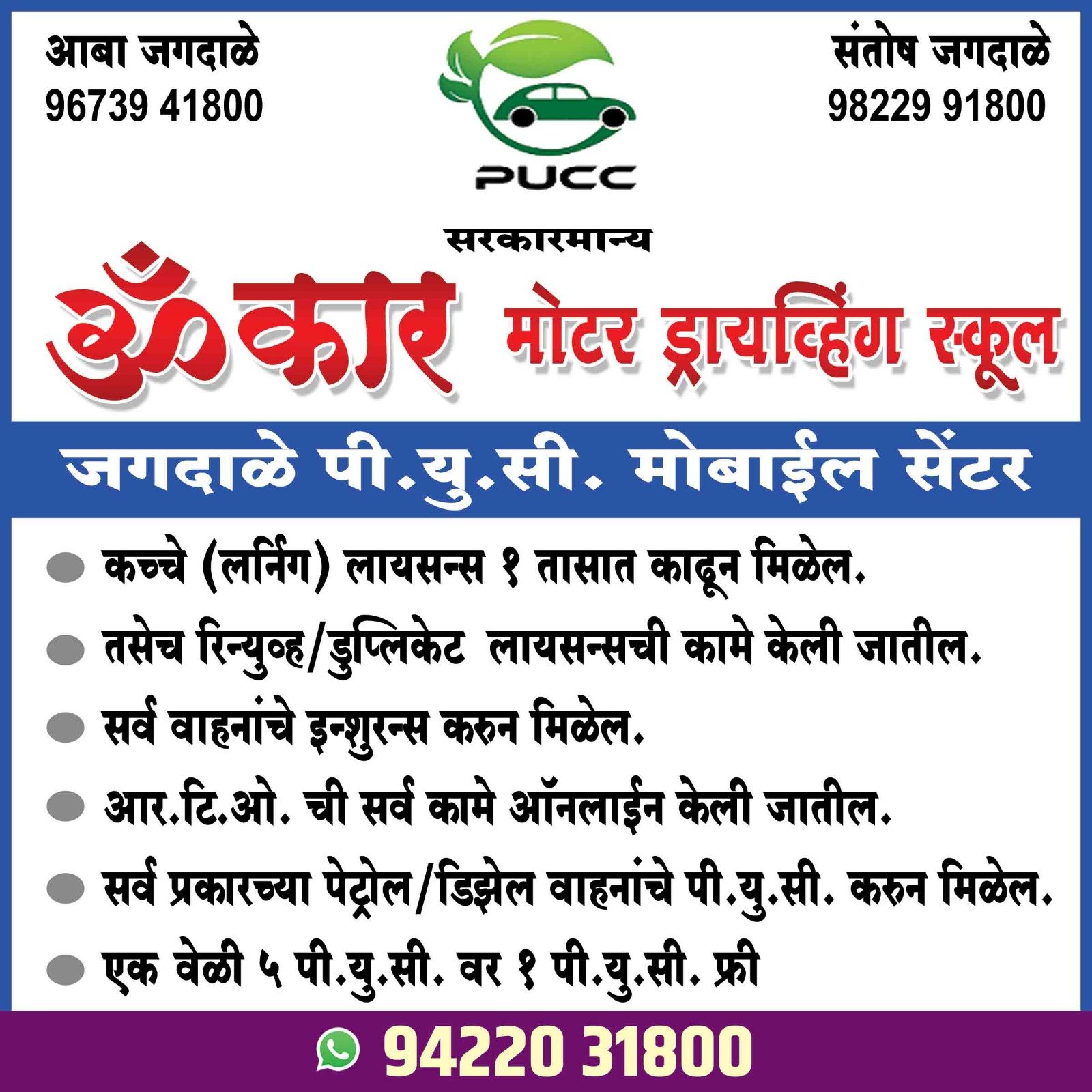 📲 पप्पू -8446471800 📲गणेश-9767471800 📲गोरख-9422031800 आता कार चालवायला शिका व नवीन पद्धतीने तेही एकदम कमी खर्चात. आमची वैशिष्ट्ये पिकप व ड्रॉप सुविधा उपलब्ध. तज्ञ व अनुभवी प्रशिक्षक. थेअरी, प्रॅक्टिकल ची सोयी नुसार बॅच उपलब्ध. महिलांसाठी स्वतंत्र बॅच ची सोय. वीकेंड बॅचेस ची सुविधा उपलब्ध. शिफ्ट प्रमाणे बॅच ॲडजस्टमेंटची सुविधा उपलब्ध. आरटीओ संदर्भात सर्व कामे केली जातील.🚗 सर्व प्रकारच्या वाहनांची लायसन्स काढून मिळतील. 🚗 कंडक्टर लायसन्स (बॅच) काढून मिळेल.,HSRP नंबर प्लेट चे फॉर्म ऑनलाईन भरून मिळतील. विनम्र आणि तत्पर सेवा अनेक वर्षांची विश्वसनीय सेवेची परंपरा योग्य आणि माफक दर एक वेळ अवश्य संपर्क करा धन्यवाद