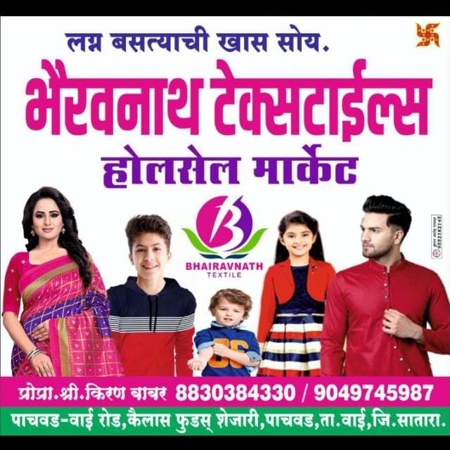 लग्न असू द्या कुठेही बसता मात्र भैरवनाथ टेक्स्टाईल पाचवड मध्येच. उत्तम दर्जा आणि अल्पदर यासाठी अल्पावधीत प्रसिद्ध झालेले.