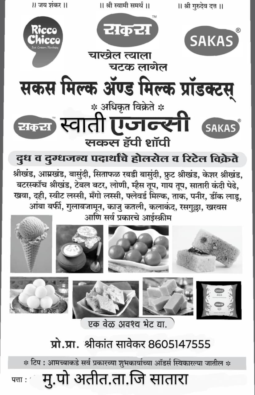 🟠 शाखा नं. 2:-(खोजेवाडी) देशमुख नगर ता. जि. सातारा. 🟠 सर्व प्रकारचे इन्शुरन्स उतरले जातील. ❤️ खात्रीशीर प्रॉडक्ट विक्री. ♥️ सकस मधील दुग्धजन्य पदार्थातील आम्रखंड श्रीखंड आईस्क्रीम बासुंदी मँगो बर्फी खवा तूप लस्सी मॅंगो लस्सी इत्यादी होलसेल दरामध्ये उपलब्ध. ❤️ शुभकार्याच्या सर्व प्रकारच्या ऑर्डर्स स्वीकारले जातील. ❤️ एक वेळ अवश्य भेट द्या ♥️ धन्यवाद