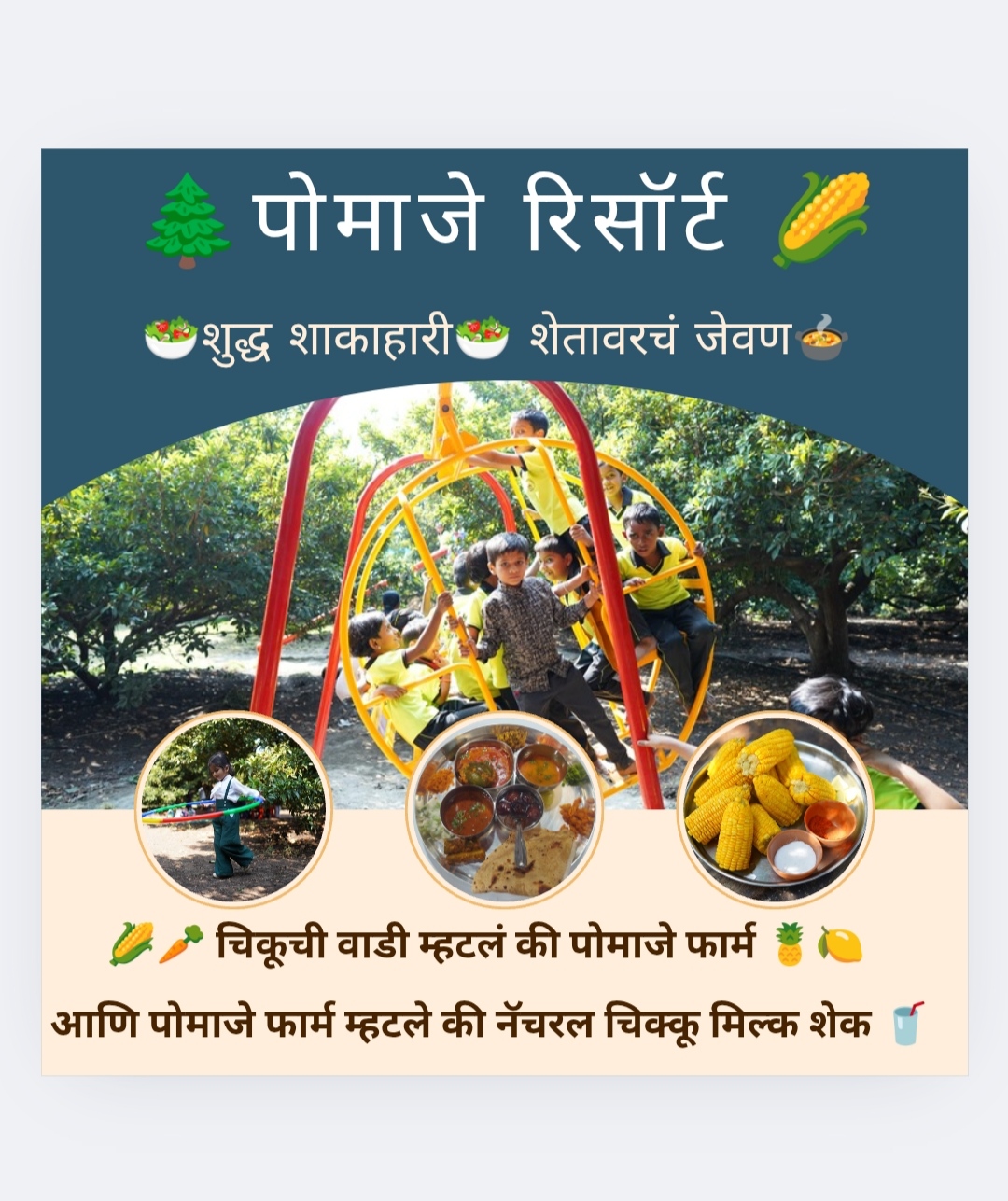 🥗पोमाजे रिसॉर्ट 🌽 शुद्ध शाकाहारी🍲 शेतावरच जेवण 🥗🍲 🌽पोमाजे रिसॉर्ट (मजरेवाडी) One day -Fun day🥏🎾 🌲(1 दिवस चिकूच्या बागेत)🥔🌴(RAINDANCE,outdoor Games,karaoke,sound system, Play area🥏🎾🎯♟️♣️🃏📲Contact no-9359118151 📲 8767696989.📲 9921165318 WhatsApp call📱 - 8421935318.➡️टीप येण्या अगोदर किती मेंबर व किती तारखेला येणार हे 9359118151 या नंबर ला wp करा.