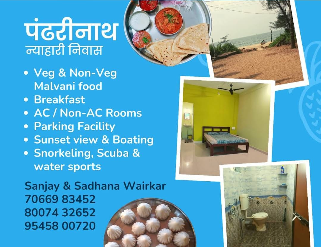 Veg & Non-veg Malavani food * Breakfast * AC / Non-AC Rooms * parking Facility * Sunset view & Boating * Scuba & Water sports ЁЯРмЁЯЪд ЁЯМК ЁЯУ▒8007432652 / 9545800720