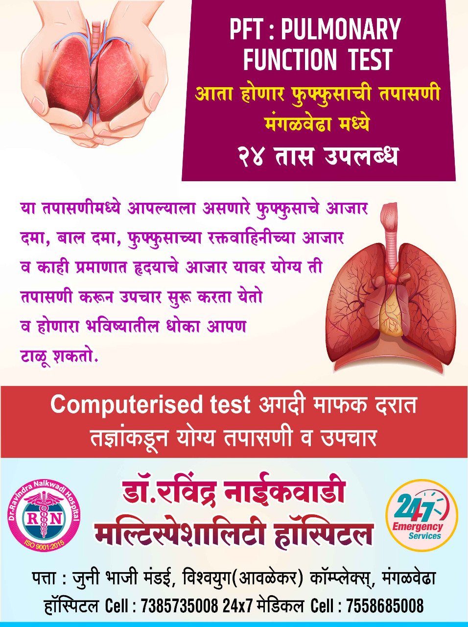 24 рддрд╛рд╕ рдЕрддреНрдпрд╛рд╡рд╢реНрдпрдХ рд╕реЗрд╡рд╛, рдбрд┐рдЬрд┐рдЯрд▓ рдПрдХреНрд╕-рд░реЗ, E.C.G, рд╡рд╛рдл рджреЗрдгреНрдпрд╛рдЪреА рд╕реБрд╡рд┐рдзрд╛