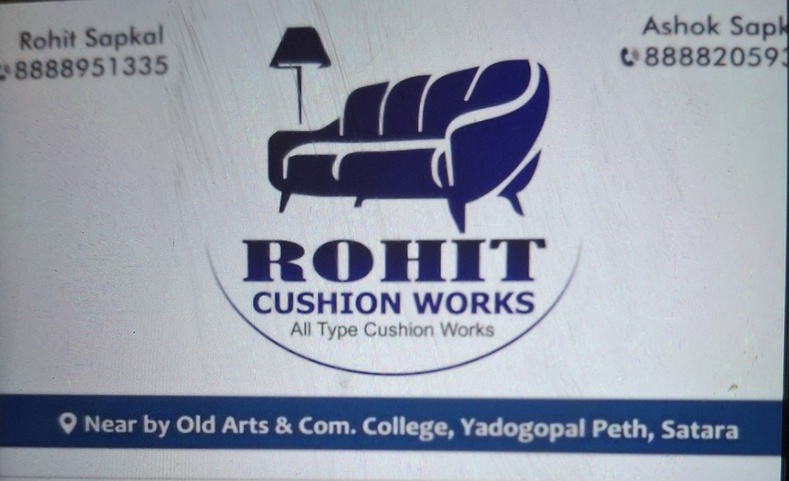 🛵 🛏️ 💺🪑 सर्व टू व्हीलर चे सीट कव्हर्स कुशन वर्क योग्य दरात करून मिळेल. 🛵 🛏️ 💺🪑 खात्रीशीर आणि विश्वसनीय सेवा. 🛵 🛏️ 💺🪑 10 वर्षांची विश्वसनीय परंपरा. 🛵 🛏️ 💺🪑आमच्याकडे सर्व प्रकारचे सोफा सेट कुशन,घरगुती कुशन, लोड,पिलो, मेट्रेसेस (गादी), पडदे, कार्पेट इत्यादी तयार तसेच विक्रीचे ठिकाण 🛵 🛏️ 💺🪑सातारा जिल्ह्यातील एक प्रसिद्ध ठिकाण रोहित कुशन, सातारा. 🛵 🛏️ 💺🪑आमच्याकडे घर, बंगलो, फ्लॅट्स तसेच कुशन ची सर्व प्रकारची कामे केली जातील. 🛵 🛏️ 💺🪑 विक्री आणि विक्री पश्चात सेवा. 🛵 🛏️ 💺🪑 एक वेळ अवश्य भेट द्या. रोहित कुशनला भेट अथवा संपर्क केल्याबद्दल धन्यवाद.