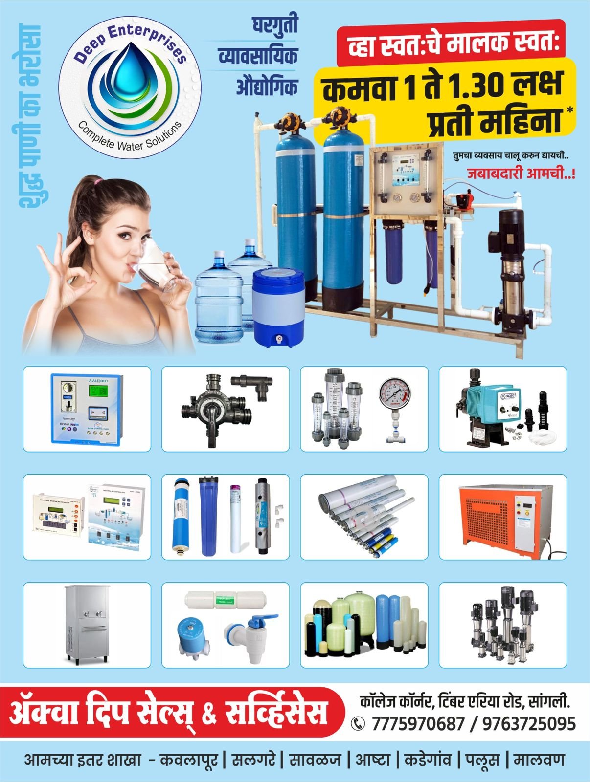 рдЖрдордЪреНрдпрд╛рдХрдбреЗ рдЖрд░.рдУ.рдЪреЗ рдШрд░рдЧреБрддреА,рдХрдорд░реНрд╕рд┐рдпрд▓,рдФрджреНрдпреЛрдЧрд┐рдХ рдмрд╕рд╡реВрди рджрд┐рд▓реЗ рдЬрд╛рддреАрд▓.рддрд╕реЗрдВрдЪ рдЖрд░.рдУ.рд╕рд╛рдареА рд▓рд╛рдЧрдгрд╛рд░реЗ рд╕рд░реНрд╡ рд╕реНрдкреЗрдЕрд░,рджреБрд░реБрд╕реНрддреА рд╕рд░реНрд╡реНрд╣рд┐рд╕ рдХрд░реБрди рджрд┐рд▓реА рдЬрд╛рдИрд▓. рдЖрд░.рдУ.рдЪрд╛ рдЙрджреНрдпреЛрдЧ рд╕реБрд░реБ рдХрд░реБрди рдорд┐рд│рд╡рд╛ рдорд╣рд┐рдирд╛ рддрдмреНрдмрд▓ рез рд▓рд╛рдЦ рддреЗ рез.рейреж. рддреБрдордЪрд╛ рд╡реНрдпрд╡рд╕рд╛рдп рдЪрд╛рд▓реВ рдХрд░реВрди рджреНрдпрд╛рдЪреА рдЬрдмрд╛рдмрджрд╛рд░реА рдЖрдордЪреА..!