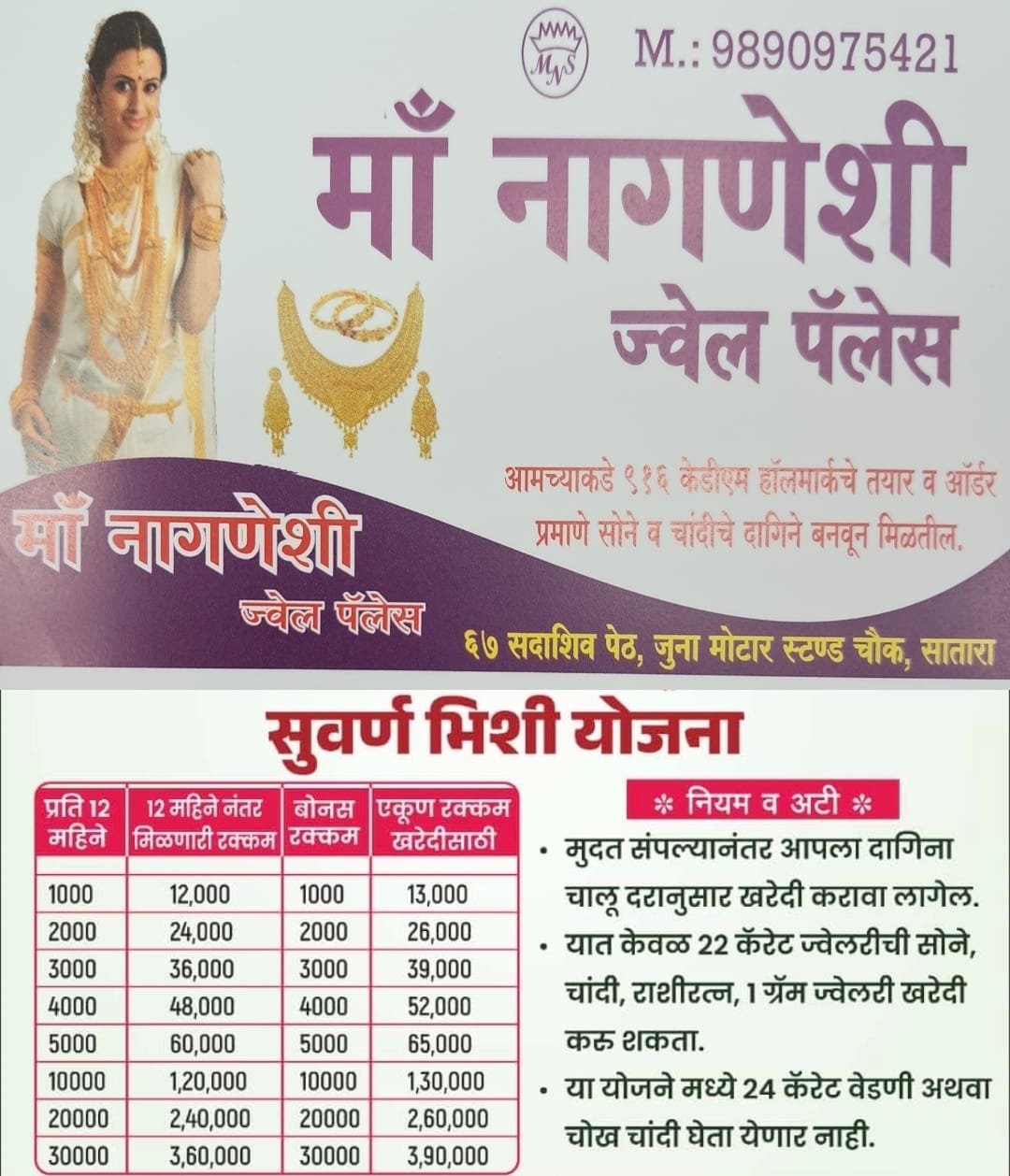 माँ नागणेशी ज्वेल पॅलेस आमच्याकडे ९१६ केडीएम हॉलमार्कचे तयार व ऑर्डर प्रमाणे सोने व चांदीचे दागिने बनवून मिळतील.
