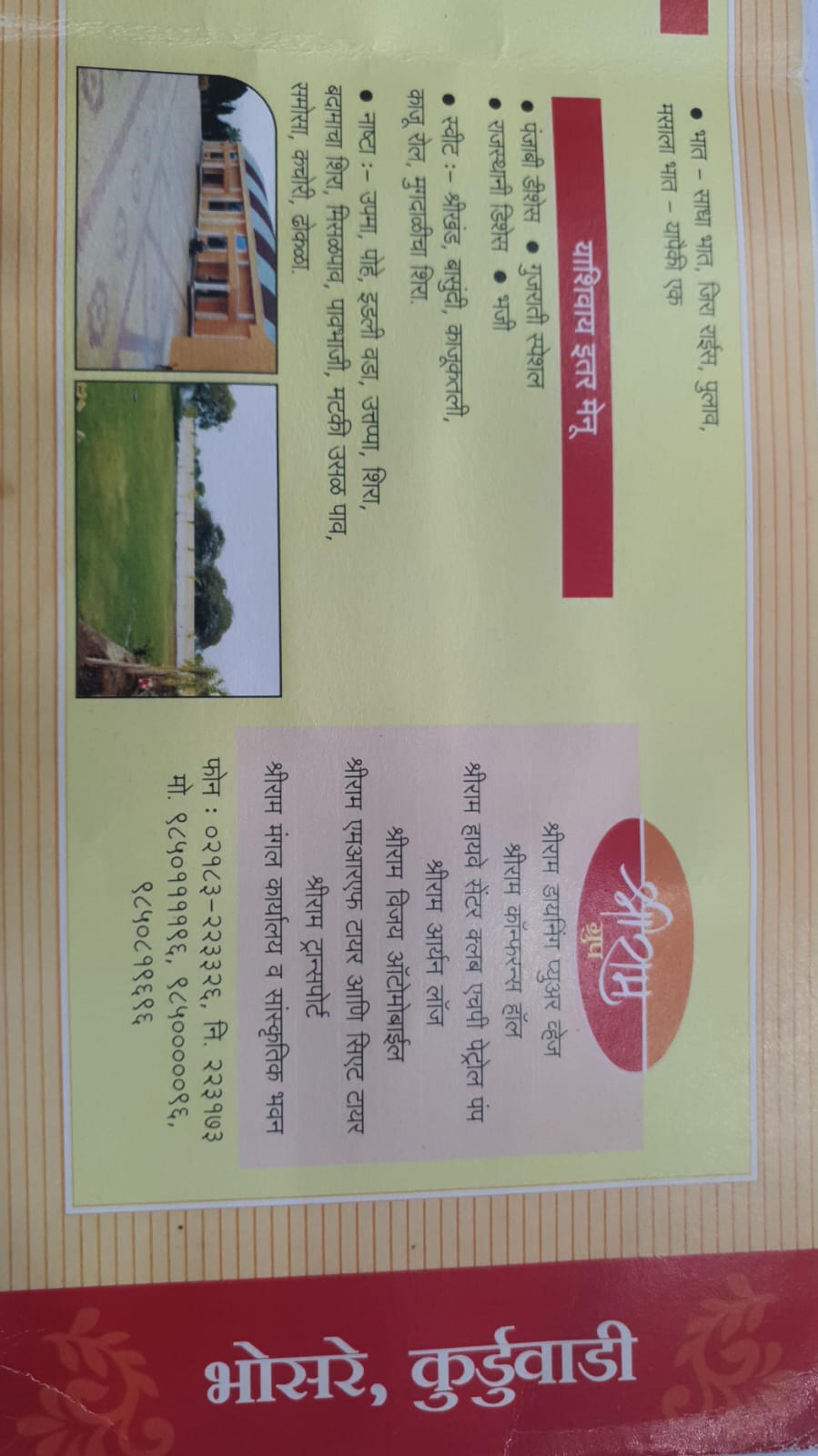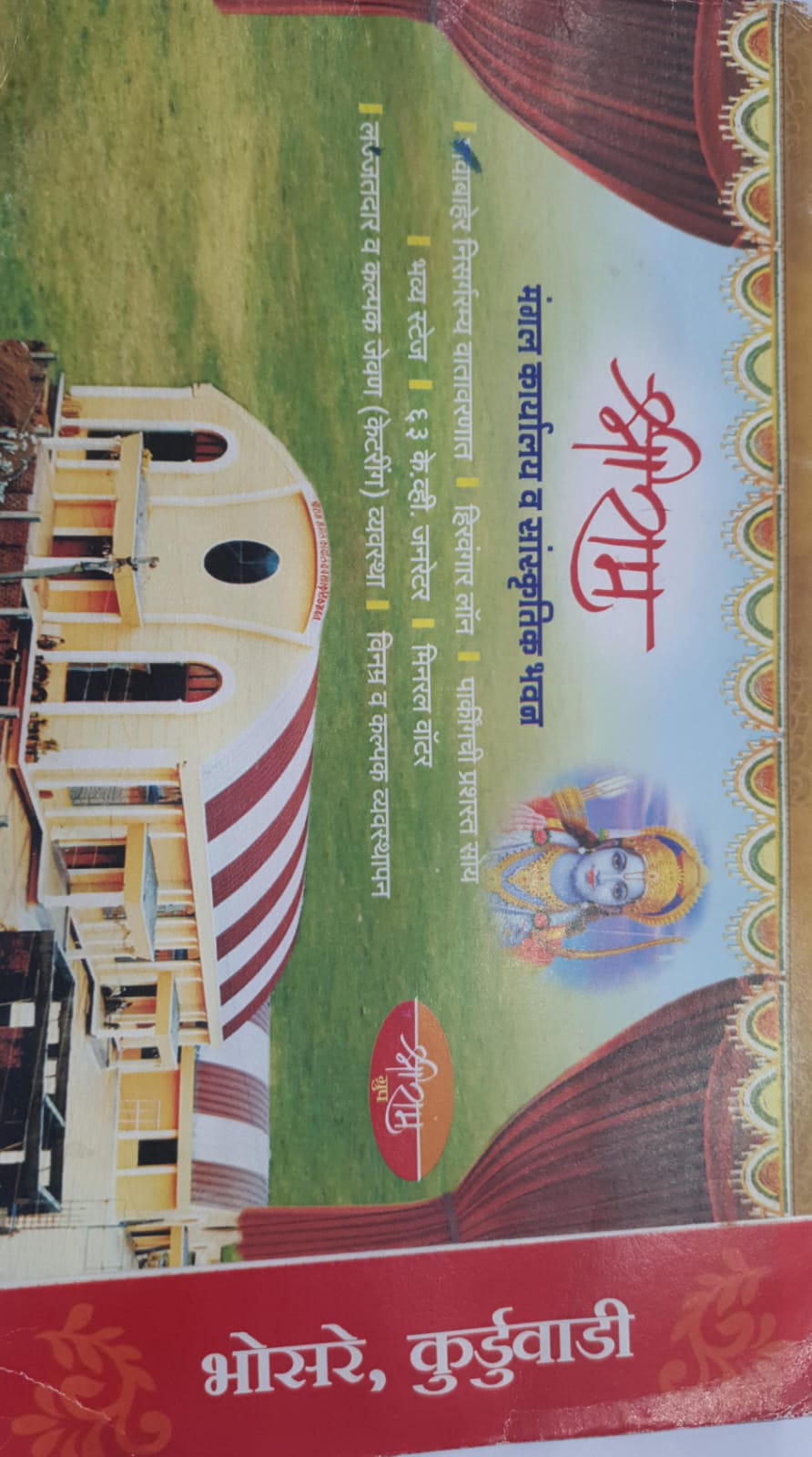 тЭдя╕П рд╢реНрд░реА рд░рд╛рдо рдордВрдЧрд▓ рдХрд╛рд░реНрдпрд╛рд▓рдп рдЖрдкрд▓реНрдпрд╛ рдХреЛрдгрддреНрдпрд╛рд╣реА рд╢реБрднрдХрд╛рд░реНрдпрд╛рд╕рд╛рдареА рдЖрдЬрдЪ рдмреБрдХ рдХрд░рд╛ * рд╢реНрд░реАрд░рд╛рдо рдордВрдЧрд▓ рдХрд╛рд░реНрдпрд╛рд▓рдп рднреЛрд╕рд░реЗ * **рд▓рдЧреНрди рд╕рдорд╛рд░рдВрдн* **рд╕рд╛рдЦрд░рдкреБрдбрд╛* **рд╡рд╛рдврджрд┐рд╡рд╕* **рдмрд╛рд░рд╕реЗ*, **рдбреЛрд╣рд╛рд│реЗ рдЬреЗрд╡рдг, *рдореБрдВрдЬ, *рд╕рддреНрдХрд╛рд░ рд╕рдорд╛рд░рдВрдн*. рд╡ рдЗрддрд░ рд╕рд░реНрд╡ рдХрд╛рд░реНрдпрдХреНрд░рдорд╛рд╕рд╛рдареА рдЙрдкрд▓рдмреНрдз.. ЁЯПЫя╕П