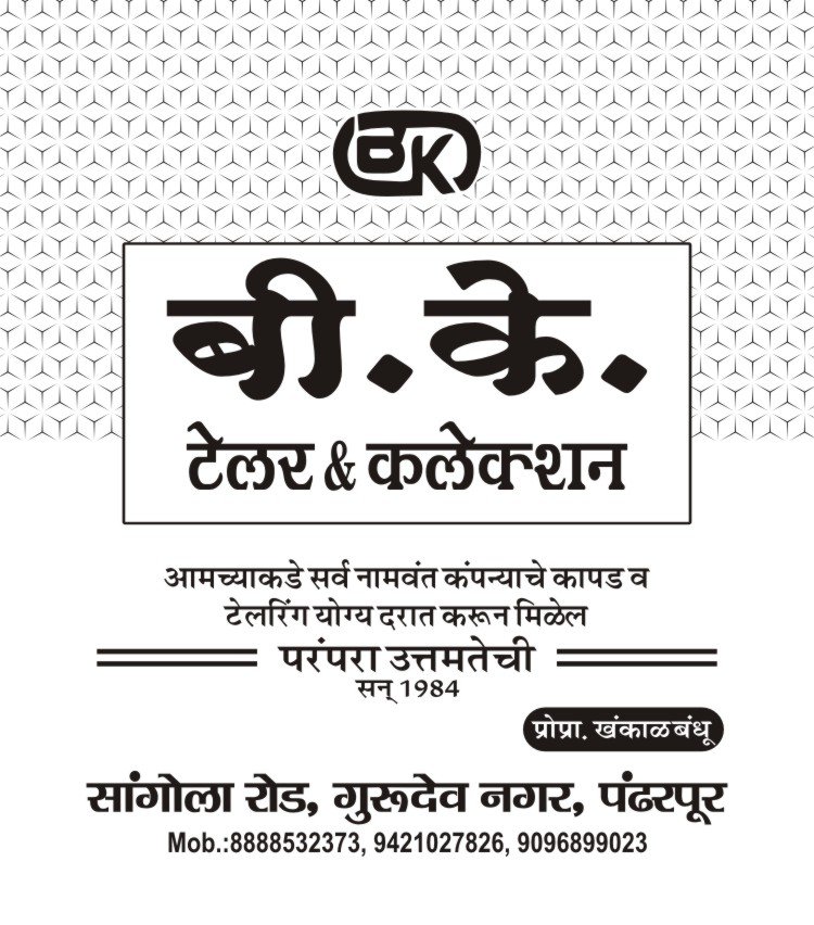 आमच्याकडे सर्व नामावंत कंपन्यांचे कापड व टेलरिंग योग्य दरात करून मिळेल. खास नवरदेवासाठी सूट जॅकेट व शेरवानी रेडमीड शिवून मिळेल Raymond Siyarams Solino Every products are branded संपूर्ण पंढरपूर तालुक्यांमध्ये नावाजलेले कपड्याचे दुकान होलसेल व रिटेलमध्ये उपलब्ध विनम्र आणि तत्पर सेवा, polite & prompt Service एक वेळ अवश्य भेट द्या....धन्यवाद 🙏
