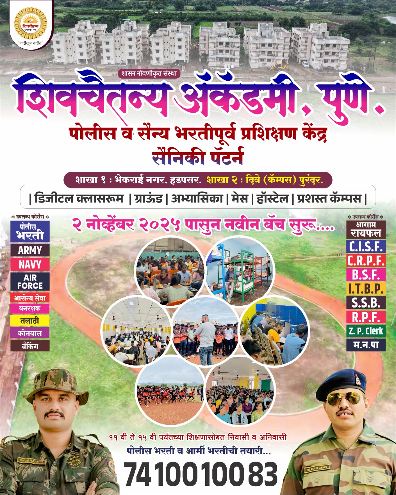 मुलांमध्ये शिस्त संस्कार आणि आत्मविश्वास रुजविणारी संस्था. पोलीस भरती, सैन्य भरती, एस एस सी जीडी ,इतर सरळ सेवा ,आरपीएफ ,स्टाफ सिलेक्शन, वनरक्षक ,तलाठी ,कोतवाल.