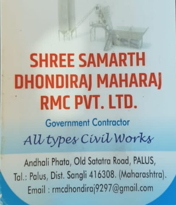 ЁЯПбтнР рд╢реНрд░реА рд╕рдорд░реНрде рдзреЛрдВрдбреАрд░рд╛рдЬ рдорд╣рд╛рд░рд╛рдЬ rmc рдкреНрд░рд╛рдпрд╡реНрд╣реЗрдЯ рд▓рд┐рдорд┐рдЯреЗрдб тнР рдЧрд╡реНрд╣рд░реНрдореЗрдВрдЯ рдХреЙрдиреНрдЯреНрд░реЕрдХреНрдЯрд░ | all types civil work ЁЯУН рдкрддреНрддрд╛ : рдЖрдВрдзрд│реА рдлрд╛рдЯрд╛, рдЬреБрдирд╛ рд╕рд╛рддрд╛рд░рд╛ рд░реЛрдб, рдкрд▓реВрд╕ рддрд╛. рдкрд▓реВрд╕, рдЬрд┐. рд╕рд╛рдВрдЧрд▓реА ЁЯУЮ рд╕рдВрдкрд░реНрдХ : тАв рд░реБрдкреЗрд╢ рдЪрд╡реНрд╣рд╛рдг тАУ 9975957932 тАв рд╢рд░рдж рд╡рдбрд╛рд░ тАУ 9890571916 тАв рд░рд╛рд╣реБрд▓ рджрд│рд╡реА тАУ 8600757258 тАв рд░рд╡реА рдЬрд╛рдзрд╡ тАУ 9764316464 тАв рдЖрджреАрдХ рджрд│рд╡реА тАУ 9860032638
