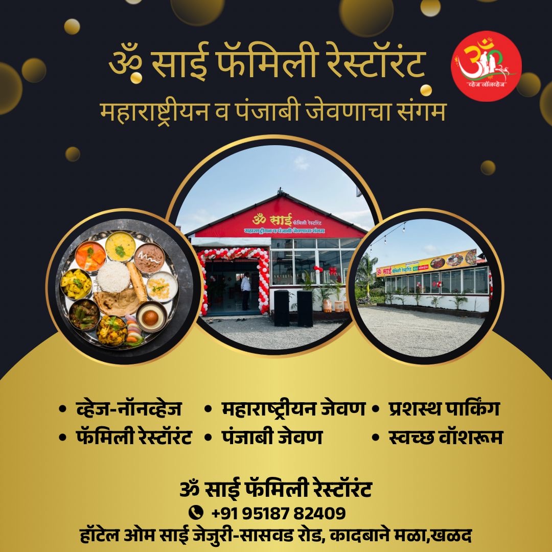 “स्वादिष्ट व दर्जेदार जेवणाने पोटभर समाधान देणारे ॐ साई फॅमिली रेस्टॉरंट आणि सुरक्षित, आरामदायी व वेळेवर सेवेसाठी ओळखले जाणारे एस के टूर्स अँड ट्रॅव्हल्स — जिथे चव आणि प्रवास दोन्ही ठिकाणी विश्वास जपला जातो!” 🍽️🚗✨
