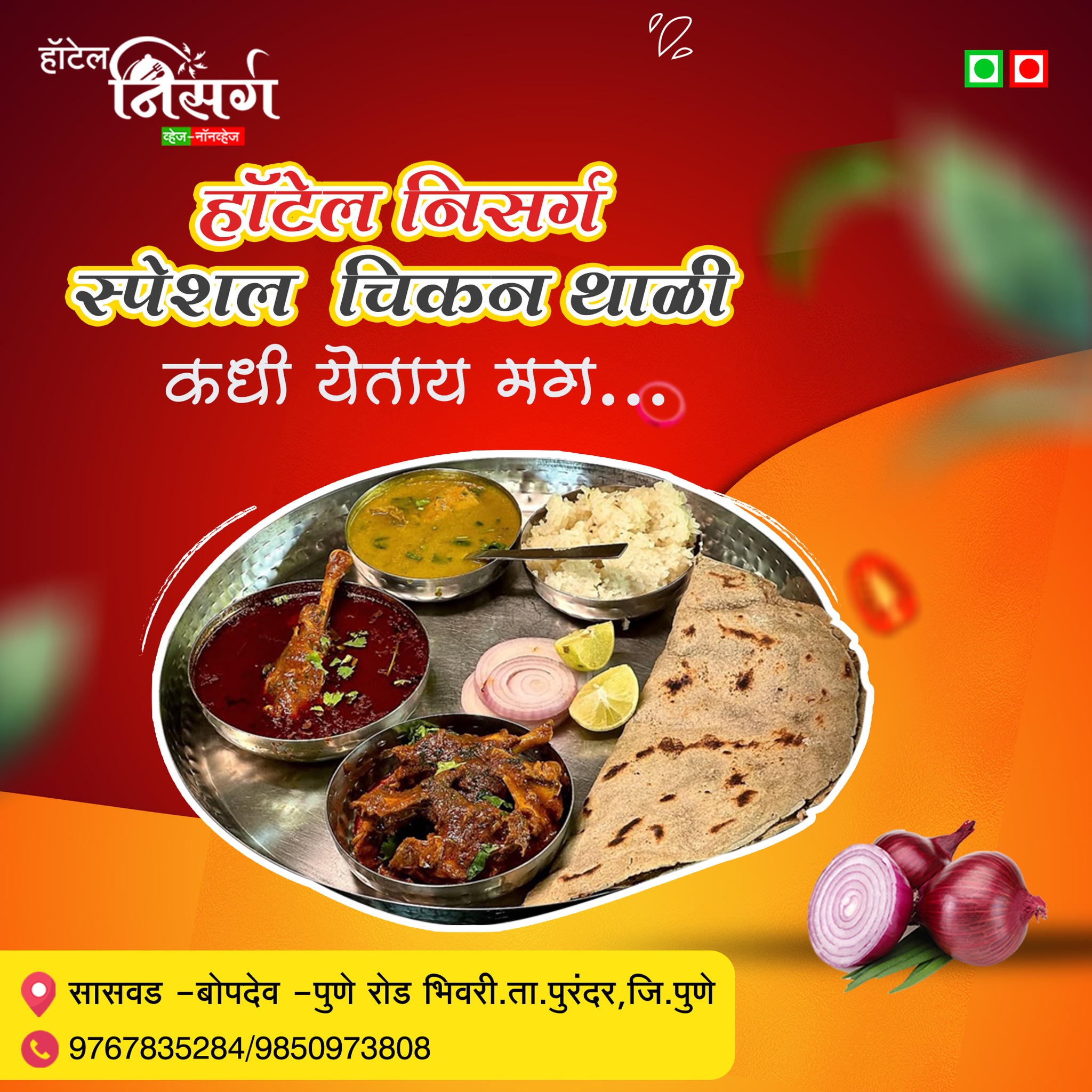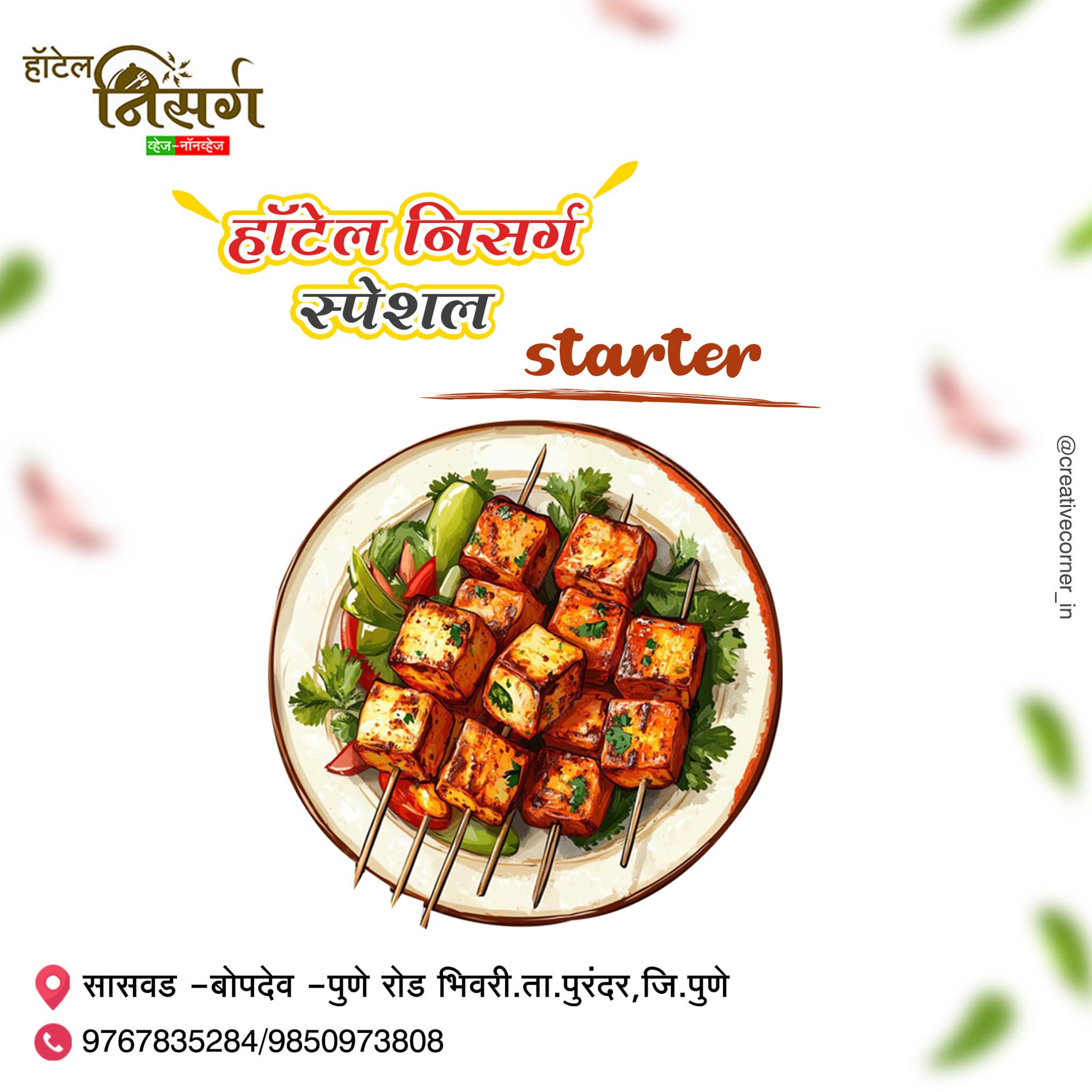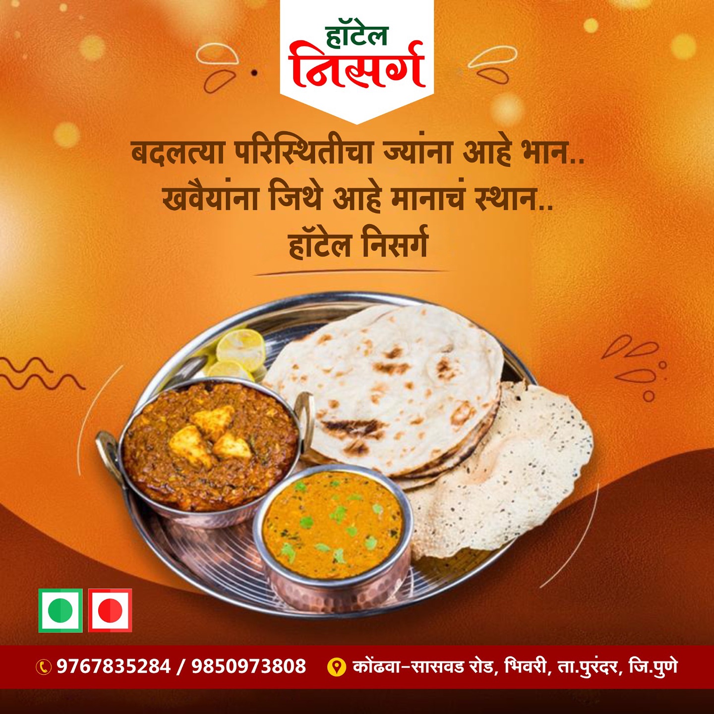 स्वादिष्ट व्हेज–नॉनव्हेज चव, स्वच्छ व कुटुंबासाठी योग्य वातावरण, तसेच विविध महाराष्ट्रीयन व पंजाबी पदार्थांची खासियत — हॉटेल निसर्गा तुमच्या सेवेत सदैव तत्पर. 🍽️🌿 📞9850973808