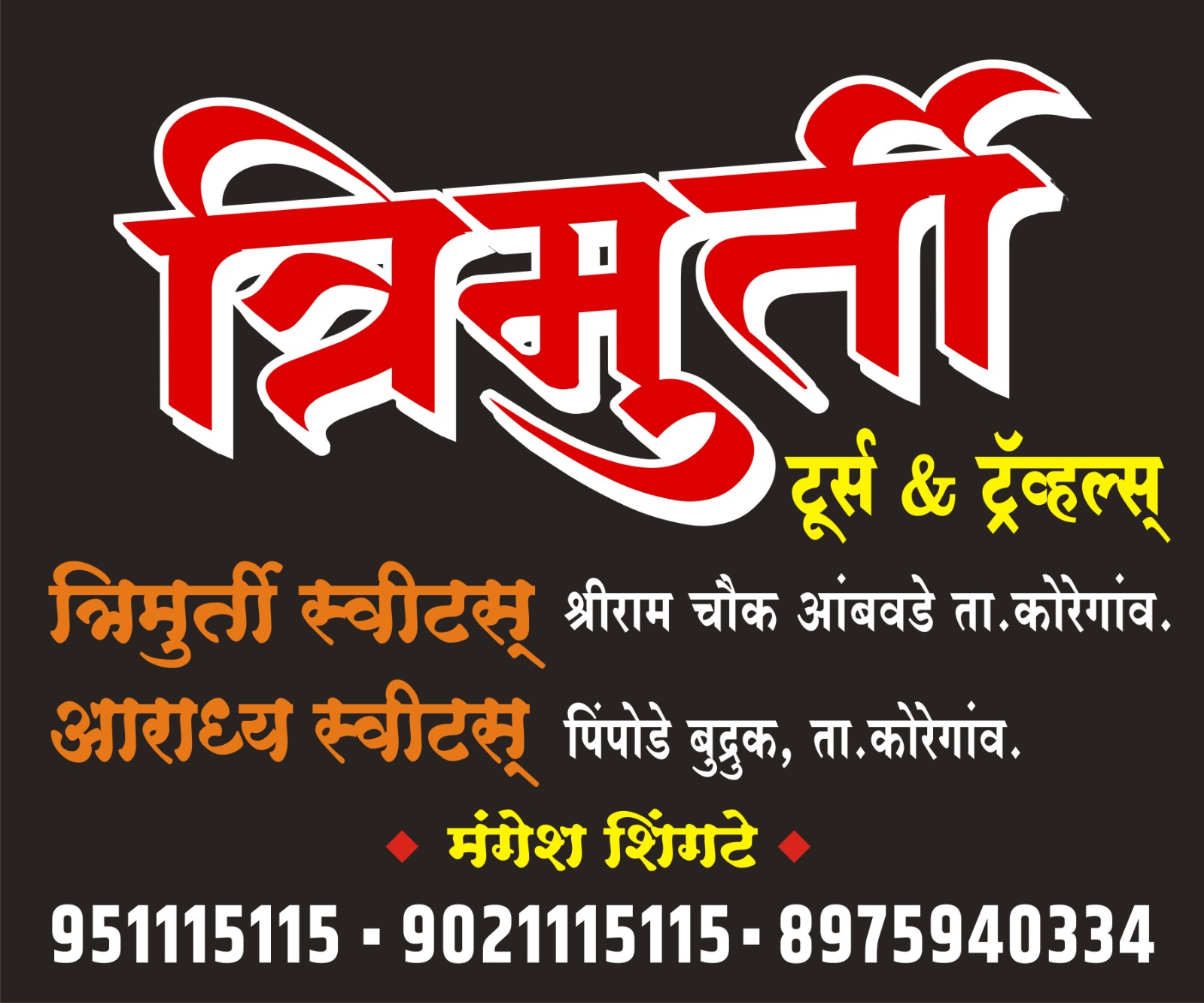 #TrimurtiTours #TrimurtiTravels #TrimurtiSweets #Ambawade #TourBooking #Devdarshan #FamilyTrip #IndiaTour #SweetShop #MaharashtraBusiness #TravelWithTrust #FreshSweets #WeddingOrders #YatraTour #LocalBusines