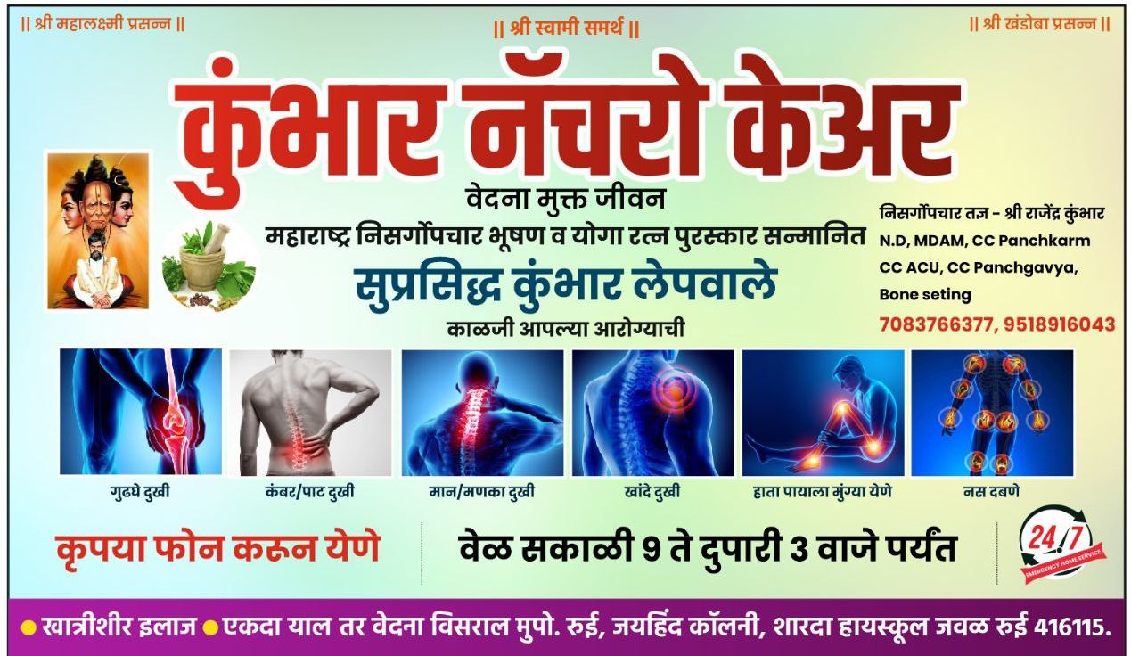 ! वेदना मुक्त जीवन! 🏃! एकदा याल तर वेदना विसराल ! जॉइंट पेन,कंबरदुखी,चकती सरकणे, गुडघा दुःखी, प्रत्येक दुखण्यावर खात्रीशीर इलाज 🏃 औषध खाऊन कंटाळा आला असेल तर एक वेळ आवश्य भेट दया ,कर्नाटक महाराष्ट्र इमर्जन्सी होम वीजिट, तसेच शिबिर आयोजन
