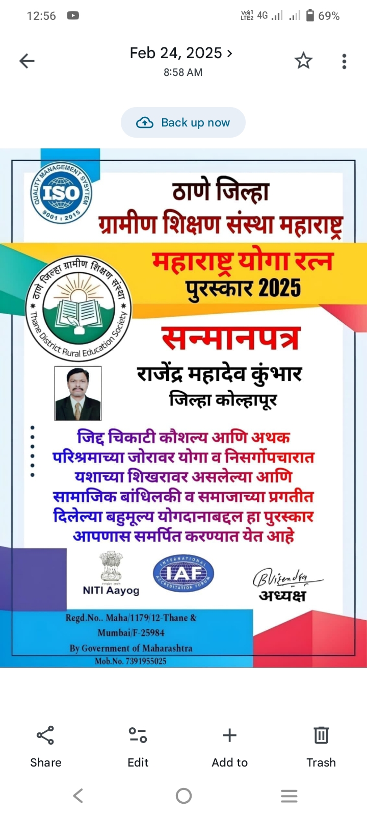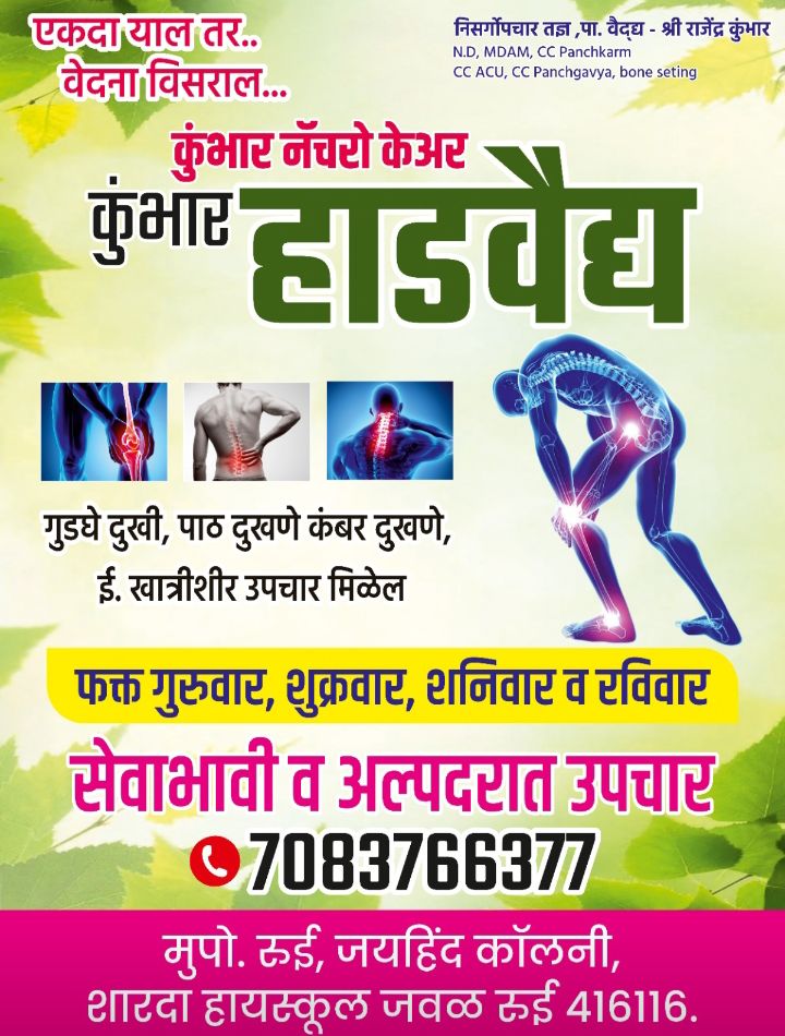 🙏 श्री स्वामी समर्थ 🙏 कमर दर्द, पीठ दर्द, घुटनोका दर्द, मनकोंका दर्द,तणाव, मोटापा,लकवा, डायबेटिस,किडनी स्टोन, मूळव्याध, इन समस्यायोंके लिये एकबार आवश्य संपर्क करे..* राजेंद्र कुंभार 7083766377,9518916043