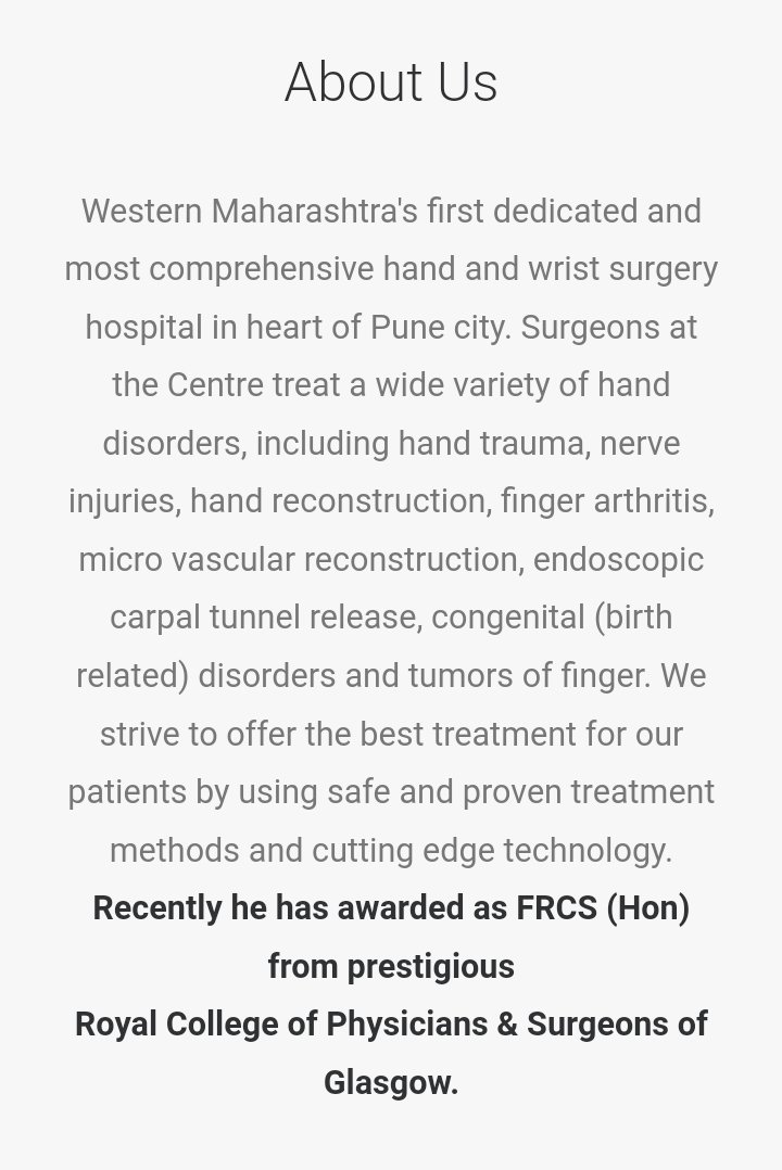 Punes first comprehensive Hand and Wrist surgery hospital in the heart of City... Hospital Time :11- 3 pm पुण्यातील पहिले सुप्रसिद्ध अत्याधुनिक हात आणि मनगट सर्जरी हॉस्पिटल. आपल्या शहरांमध्ये , आपल्या सेवेत.