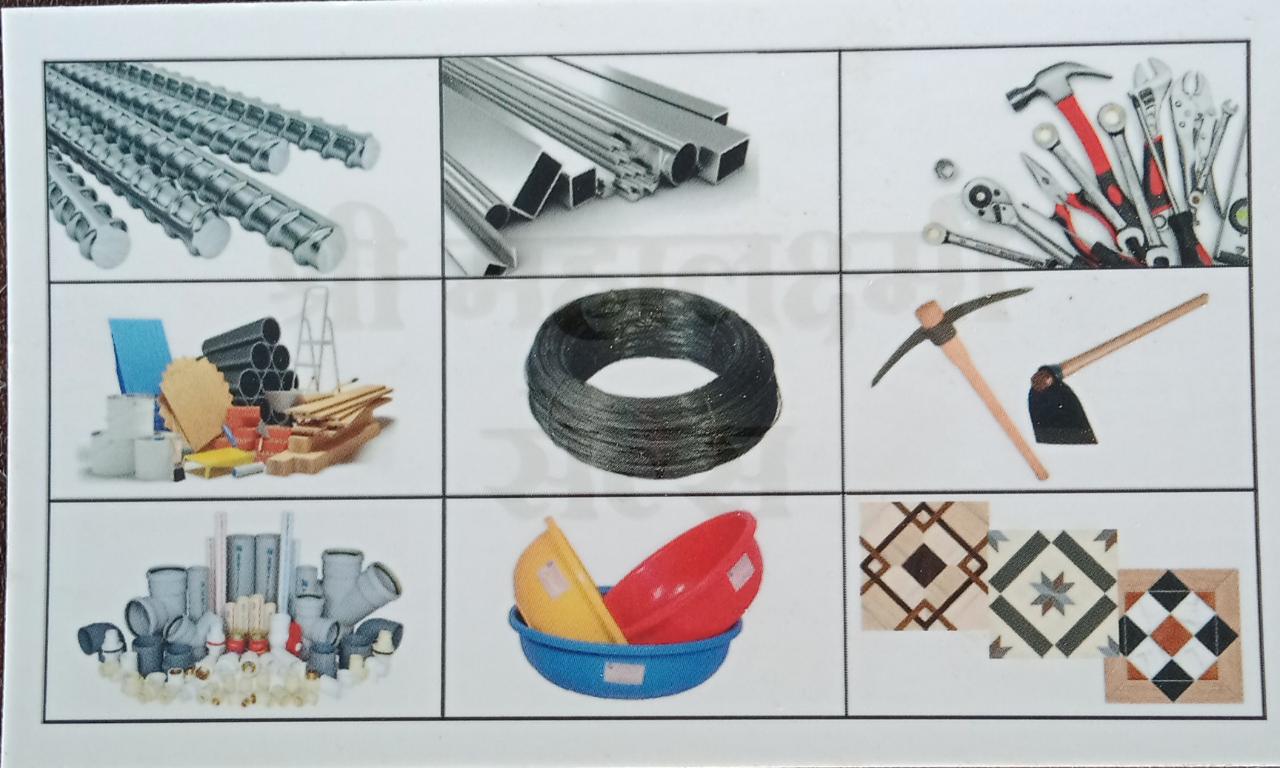 आमच्याकडे सर्व नामांकित कंपन्यांचे स्टील उपलब्ध आहे तसेच आमच्याकडे हार्डवेअर आणि प्लंबिंग पाईप उपलब्ध आहेत