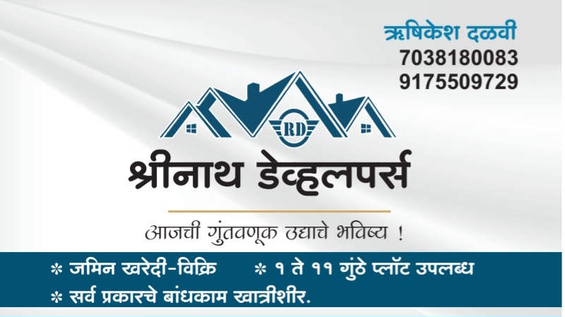 खात्रीशीर आणि कॉलिटी बांधकामासाठी सुप्रसिद्ध विनम्र आणि तत्पर सेवा असंख्य समाधानी ग्राहक अनेक वर्षांची विश्वसनीय सेवेची परंपरा प्लॉटिंग आणि बांधकाम क्षेत्रातील विश्वसनीय नाव जमीन खरेदी विक्री प्लॉट खरेदी विक्री तसेच भाडेतत्त्वावर गाळा बिल्डिंग घर प्लॉट इत्यादीसाठी अवश्य संपर्क करा भाडेतत्त्वावर बिल्डिंग रो हाऊस गाळे घर उपलब्ध आहेत रियल इस्टेट क्षेत्रामध्ये अनेक वर्षांचा अनुभव तज्ञ टीम एक अवश्य संपर्क करा अथवा प्रत्यक्ष भेट द्या धन्यवाद