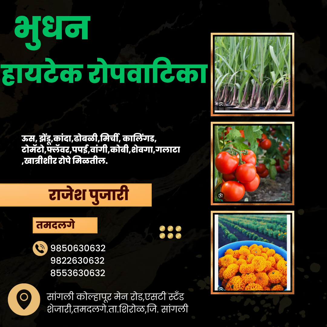 рдЙрд╕,рдЭреЗрдВрдбреВ,рдХрд╛рдВрджрд╛,рдвреЛрдмрд│реА,рдорд┐рд░рдЪреА,рдХрд▓рд┐рдВрдЧрдб,рдЯреЛрдореЕрдЯреЛ, рдлреНрд▓реЙрд╡рд░, рдкрдкрдИ ,рд╡рд╛рдВрдЧреА, рдХреЛрдмреА рд╢реЗрд╡рдЧрд╛ рдЧрд▓рд╛рдЯрд╛.рдЪреА рд╕рд░реНрд╡ рд░реЛрдкреЗ рдЦрд╛рддреНрд░реАрд╢реАрд░ рдорд┐рд│рддреАрд▓. рдКрд╕рд╛ рдордзреАрд▓ рд╕рд░реНрд╡ рдЬрд╛рддреАрдЪреА рд░реЛрдкреЗ рдЦрд╛рддреНрд░реАрд╢реАрд░ рдСрд░реНрдбрд░ рдкреНрд░рдорд╛рдгреЗ рддрдпрд╛рд░ рдХрд░реВрди рдорд┐рд│рддреАрд▓.рддрд╕реЗрдЪ рд╣рдЬрд░ рд╕реНрдЯреЙрдХ рдордзреНрдпреЗ рдЙрдкрд▓рдмреНрдз. 86032 8005 10001 15012 13374 0265 18121