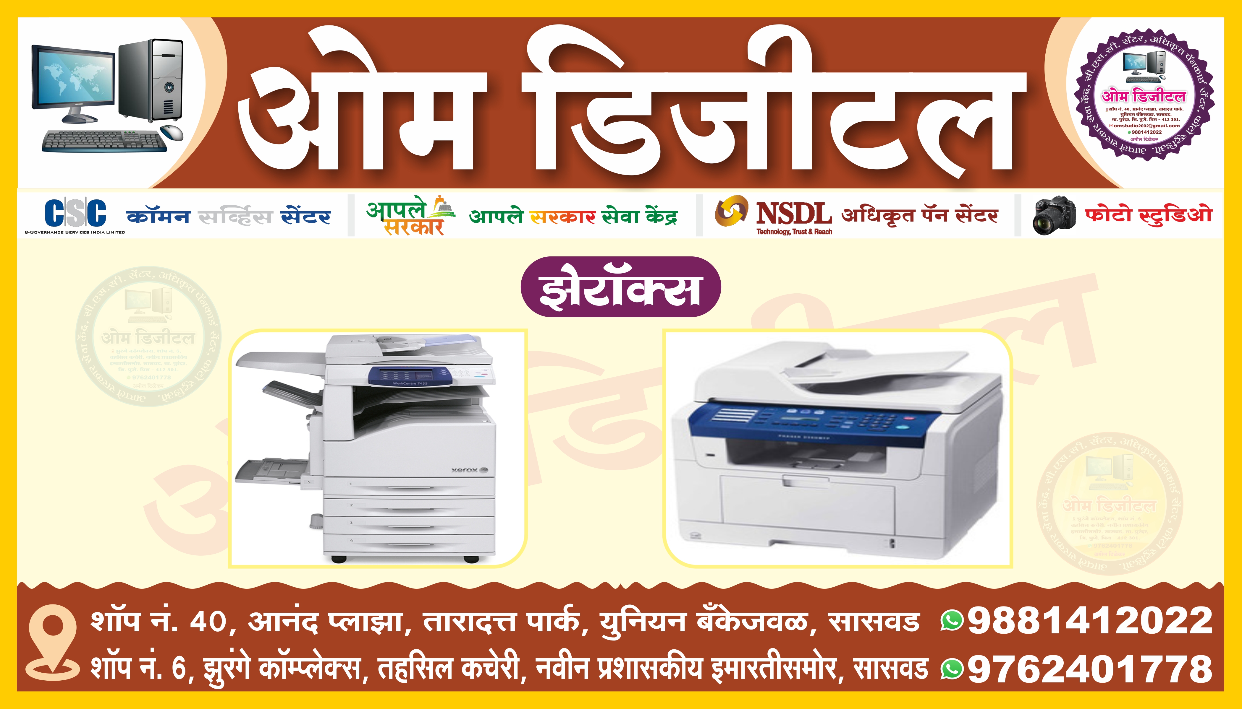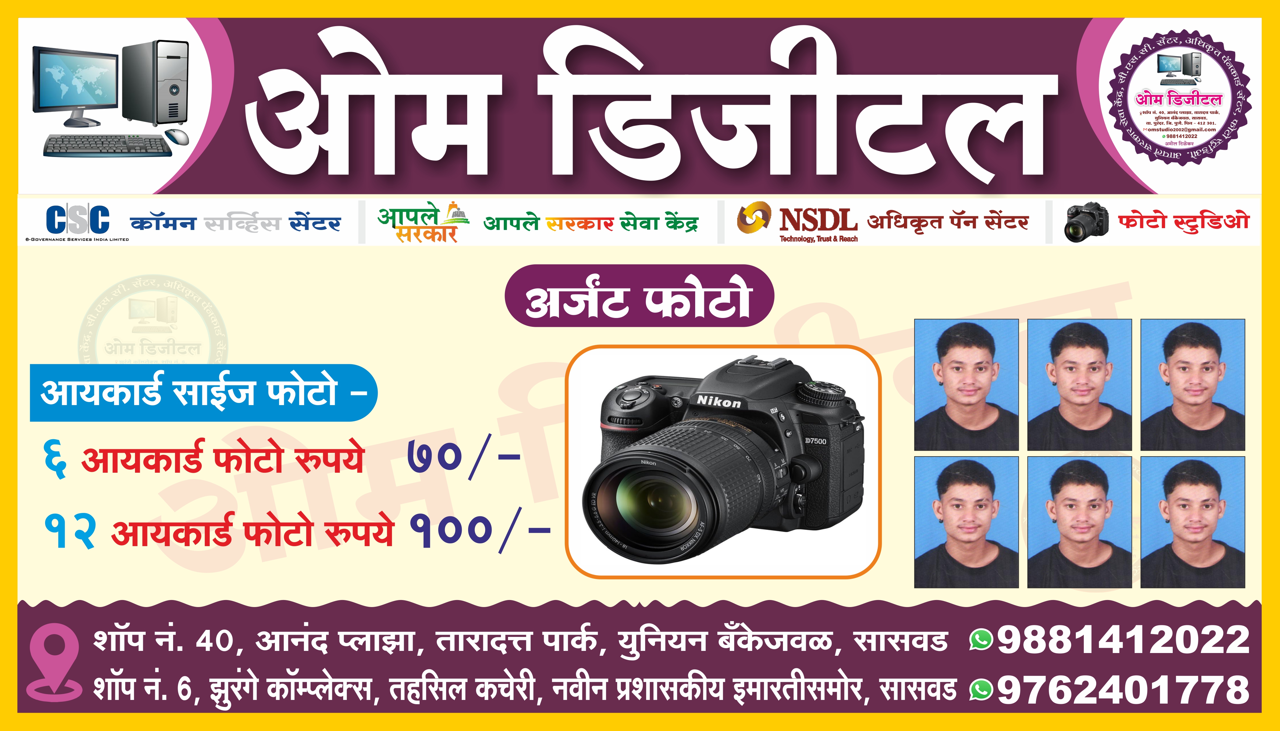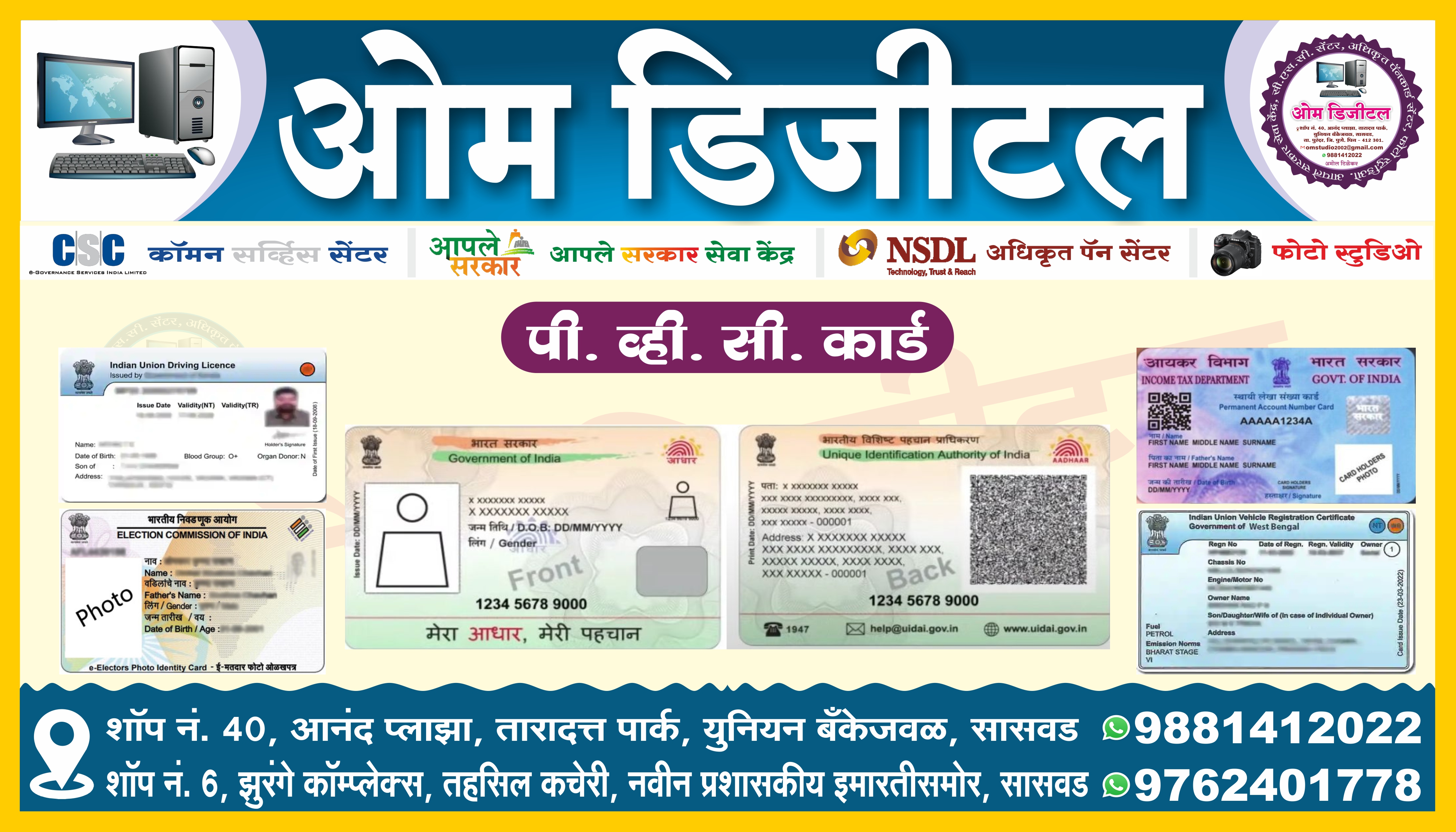 📲 9881412022 📲 9156814032 💻ओम डिजीटल सासवड , ✳️पॅनकार्ड सेंटर, ✳️ शॉप ॲक्ट ✳️ उद्योग आधार , ✳️ उत्पन्न दाखला ✳️ डोमासाईल ✳️ नॉन क्रिमीलेयर ✳️ फूड लायसन्स ✳️ गॅझेट