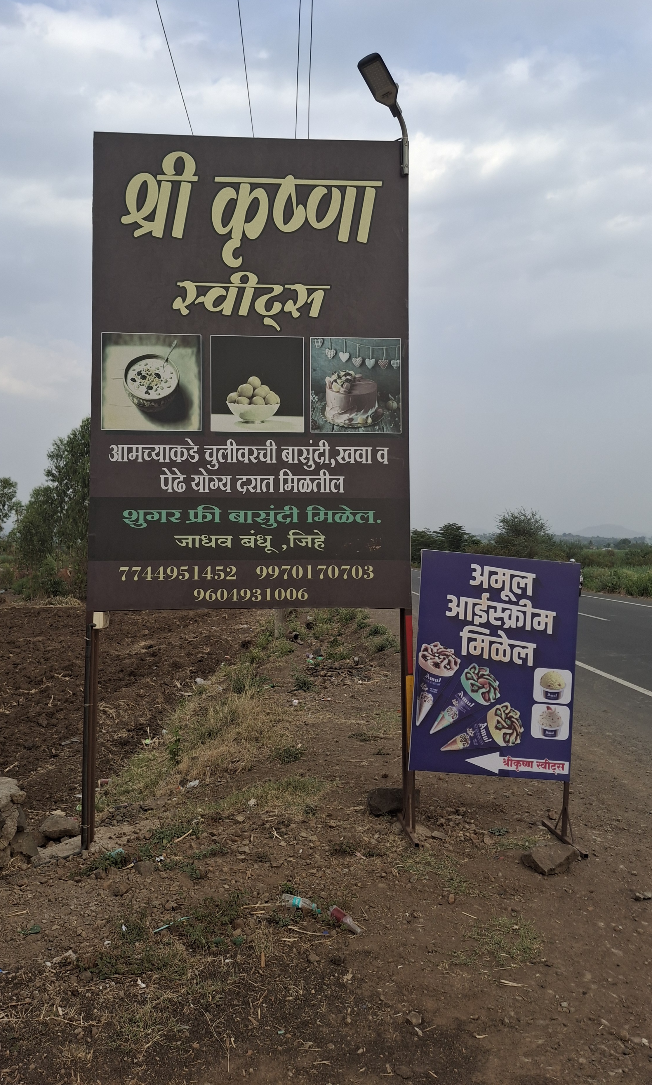 आमच्याकडे पेढे, बर्फी, खवा चुलीवरची खास बासुंदी इतर पदार्थ मिळतील. तसेच बिस्कीट, आईस क्रीम व आमच्याकडे बेकरीचे सर्व पदार्थ योग्यदरात मिळतील.
