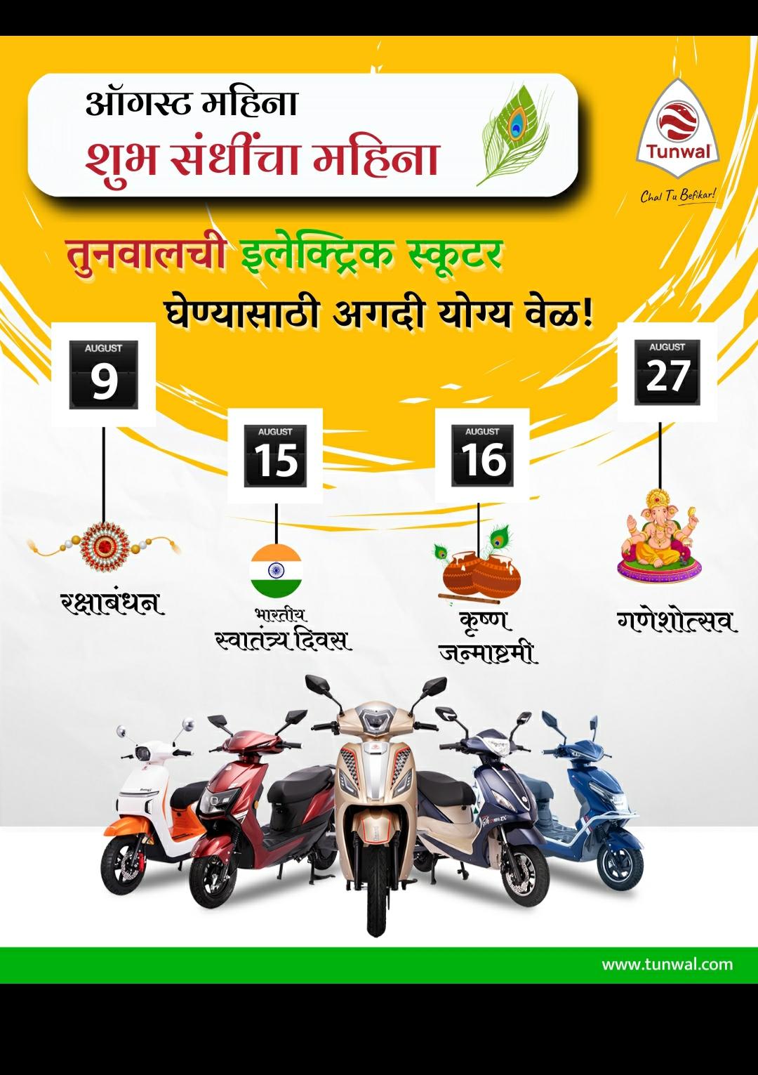 рдЖрдордЪреНрдпрд╛рдХрдбреЗ рдИ- рдмрд╛рдИрдХ рдордзреАрд▓ рдирд╛рдорд╡рдВрдд рдХрдВрдкрдиреА tunwal e - motors рдпрд╛ рдХрдВрдкрдиреАрдЪреНрдпрд╛ рдмрд╛рдИрдХ рд╡рд┐рд╡рд┐рдз рдХрд▓рд░ рдордзреНрдпреЗ рдЙрдкрд▓рдмреНрдз.рдЖрдордЪреНрдпрд╛ рдИ - рдмрд╛рдИрдХ рд▓рд╛ рдПрдХрджрд╛ рдЪрд╛рд░реНрдЬрд┐рдВрдЧ рдордзреНрдпреЗ 70 рддреЗ 100 рдХрд┐рд▓реЛрдореАрдЯрд░ рдпрд╛ рдЕрд╡рд┐рд╢реНрд╡рд╕реНрдиреАрдп рдЕрдВрддрд░рд╛рд╡рд░ рдкреЛрд╣рдЪрддреЗ. рдмрд╛рдИрдХ рдЪреНрдпрд╛ рд╕реЗрд▓реНрд╕,рд╕рд░реНрд╡реНрд╣рд┐рд╕ рд╕реНрдкреЗрдЕрд░ рдЕрдБрдб рдмреЕрдЯрд░реА рдЙрдкрд▓рдмреНрдз.