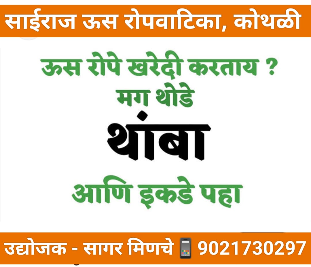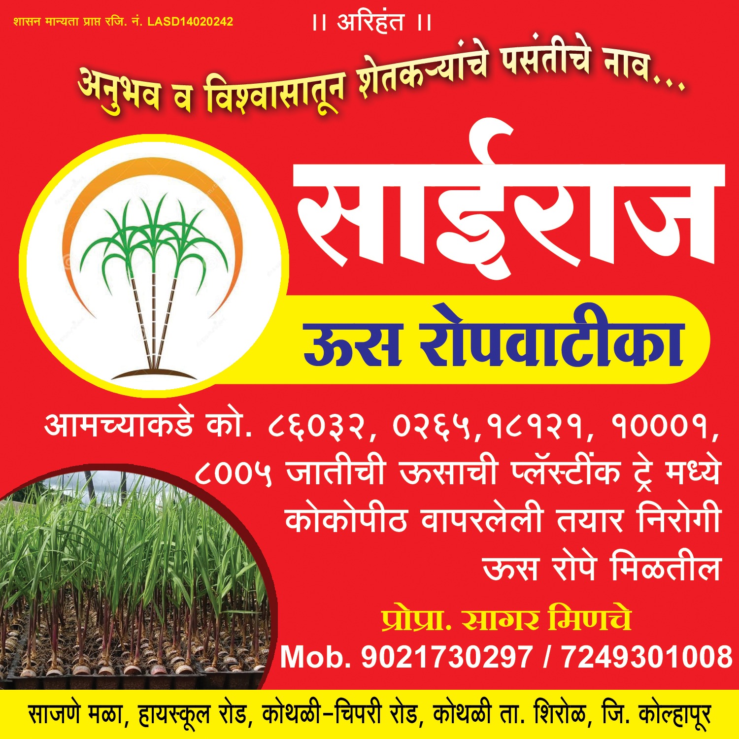 ЁЯМ┐рд╕рд╛рдИ рд╣рд╛рдпрдЯреЗрдХ рдКрд╕ рд░реЛрдкрд╡рд╛рдЯрд┐рдХрд╛ рдордзреНрдпреЗ рдЖрдкрд▓реЗ рд╕реНрд╡рд╛рдЧрдд рдЖрд╣реЗ. рдХреЛ 86032, 0265, 10001, 8005, 18121, 13007, 15012 рдпрд╛ рдЬрд╛рддреАрдЪреЗ рд╡ рдЕрдиреНрдп рд╕реБрдзрд╛рд░рд┐рдд рдЬрд╛рддреАрдЪреНрдпрд╛ рдКрд╕рд╛рдЪреА рд░реЛрдкреЗ рд╢реЗрддрд╛рдордзреНрдпреЗ рдкреЛрд╣реЛрдЪ рдорд┐рд│рддреАрд▓.