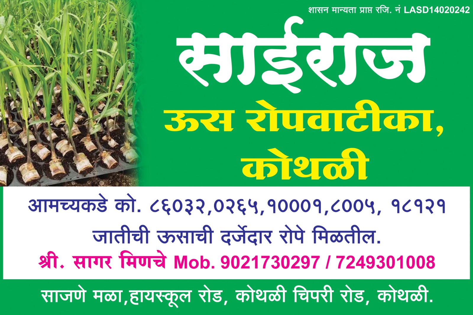 рдкреНрд░реЛрдкреНрд░рд╛.рд╕рд╛рдЧрд░ рдорд┐рдгрдЪреЗ рд╕рдВрдкрд░реНрдХ ЁЯУ▓9021730297 ЁЯУ▒7249301008 рдорд╣рд╛рд░рд╛рд╖реНрдЯреНрд░ рд╢рд╛рд╕рди рдорд╛рдиреНрдпрддрд╛ рдкреНрд░рд╛рдкреНрдд рд░реЛрдкрд╡рд╛рдЯрд┐рдХрд╛. рд▓рд╛рдпрд╕рдиреНрд╕ рдирдВрдмрд░-LASD(V)2025003KLP.