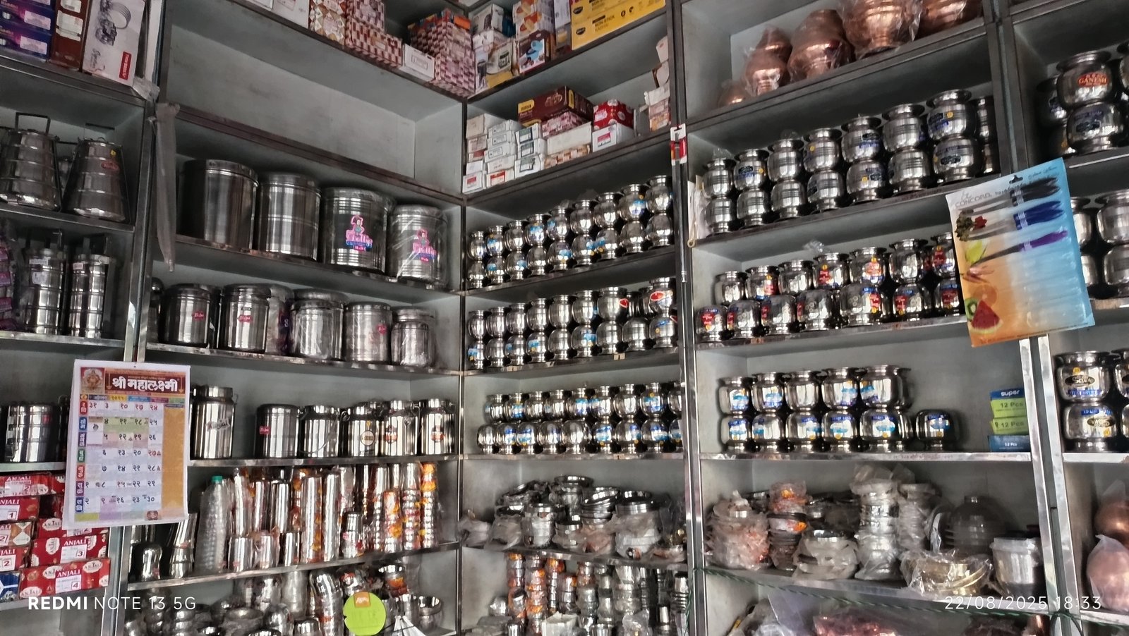 🥇🍽1970 पासून ग्राहकांच्या विश्वासाची परंपरा🍽🥇 आमच्याकडे सर्व प्रकारचे भांडी योग्य दरात उपलब्ध. 🍽🥇 आकर्षक तांबा हे बघा आणि खाली पितळेची भांडी 🍽🥇 स्टेनलेस स्टीलची भांडी 🍽🥇 ॲल्युमिनियम भांडी आणि प्रेझेंटेशन वस्तूचे धाराशिव शहरातील सुप्रसिद्ध व्यापारी