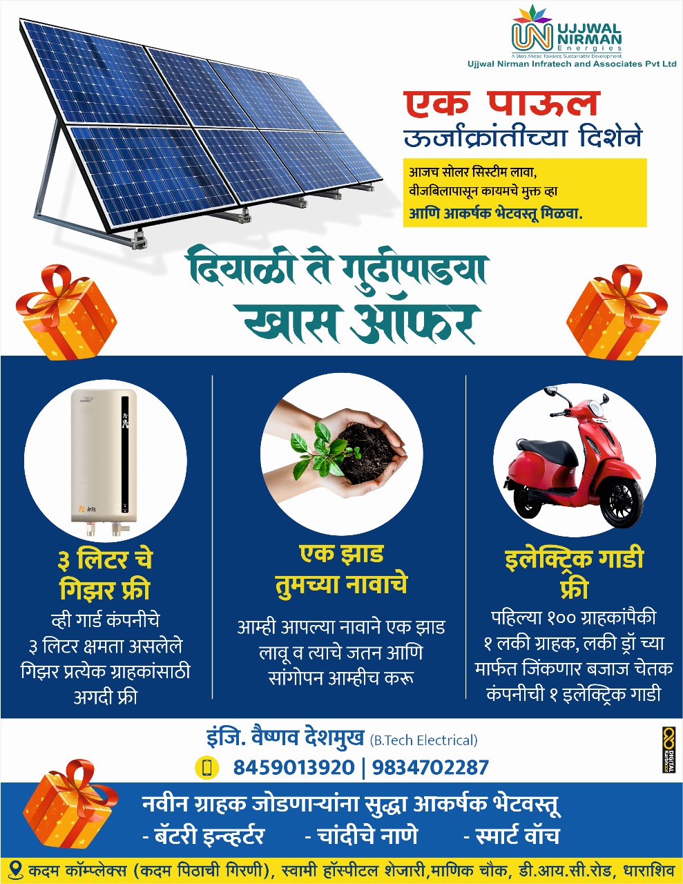 🏗️ आमच्याकडे सर्व प्रकारचे कन्स्ट्रक्शन ची सर्व प्रकारची कामे खात्रीशीर व दर्जेदार करून मिळतील. ☀️ सर्व ब्रँडेड कंपन्यांचे सोलार सिस्टिम व सर्विसेस दर्जेदार व योग्य दरात उपलब्ध. ⚡🥇 आमच्याकडे सर्व प्रकारचे इलेक्ट्रिकल इक्विपमेंट्स मिळतील