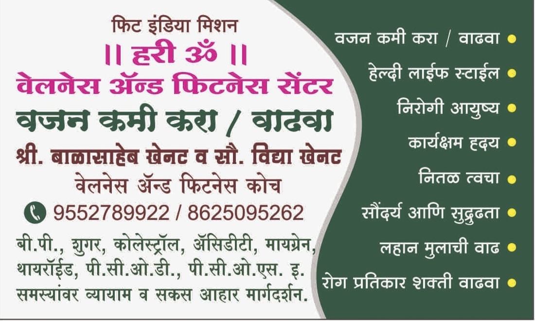 ЁЯПЛя╕ПтАНтЩАя╕П рд╡рдЬрди рдХрдореА рдХрд░рд╛ / рд╡рдЬрди рд╡рд╛рдврд╡рд╛ тАФ рдШрд░рдмрд╕рд▓реНрдпрд╛ рд╕реЛрдкреЗ рдЙрдкрд╛рдп! рдШрд░рдмрд╕рд▓реНрдпрд╛ рдорд┐рд│рд╡рд╛ Free Health Checkup рдЖрдгрд┐ рд╡реИрдпрдХреНрддрд┐рдХ рдлрд┐рдЯрдиреЗрд╕ рдорд╛рд░реНрдЧрджрд░реНрд╢рди ЁЯМ▒ ЁЯСйтАНтЪХя╕П рдлрд┐рдЯрдиреЗрд╕ рдХреЛрдЪ: рд╢реНрд░реА. рдмрд╛рд│рд╛рд╕рд╛рд╣реЗрдм рдЦреЗрдирдЯ рдЖрдгрд┐ рд╕реМ. рд╡рд┐рджреНрдпрд╛ рдЦреЗрдирдЯ рдЕрдиреБрднрд╡реА рд╡реЗрд▓рдиреЗрд╕ рдЖрдгрд┐ рдлрд┐рдЯрдиреЗрд╕ рдХреЛрдЪ тАФ рдЖрд░реЛрдЧреНрдп рд╕реБрдзрд╛рд░рдгреНрдпрд╛рд╕рд╛рдареА рдорд╛рд░реНрдЧрджрд░реНрд╢рди.