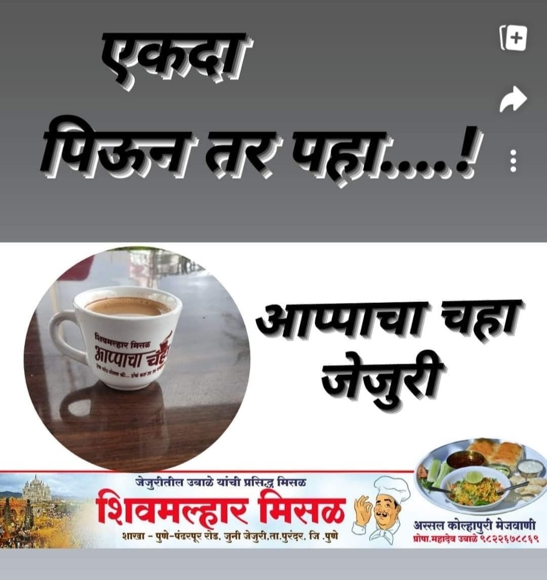 हॉटेल शिव मल्हार मिसळ हे जेजुरीमधील अस्सल कोल्हापुरी चवीसाठी ओळखले जाणारे खास मिसळ हॉटेल आहे. झणझणीत, तिखट आणि खमंग चवीची खरी कोल्हापुरी मिसळ येथे प्रेमाने आणि स्वच्छतेत तयार केली जाते. उबाळे आप्पांची पारंपरिक रेसिपी जपणारी शिव मल्हार मिसळ सकाळच्या नाश्त्यासाठी ग्राहकांची पहिली पसंती आहे. दर्जेदार साहित्य, खास मसाले आणि सातत्यपूर्ण चव यामुळे एकदा चाखलेली मिसळ कायम लक्षात राहते.