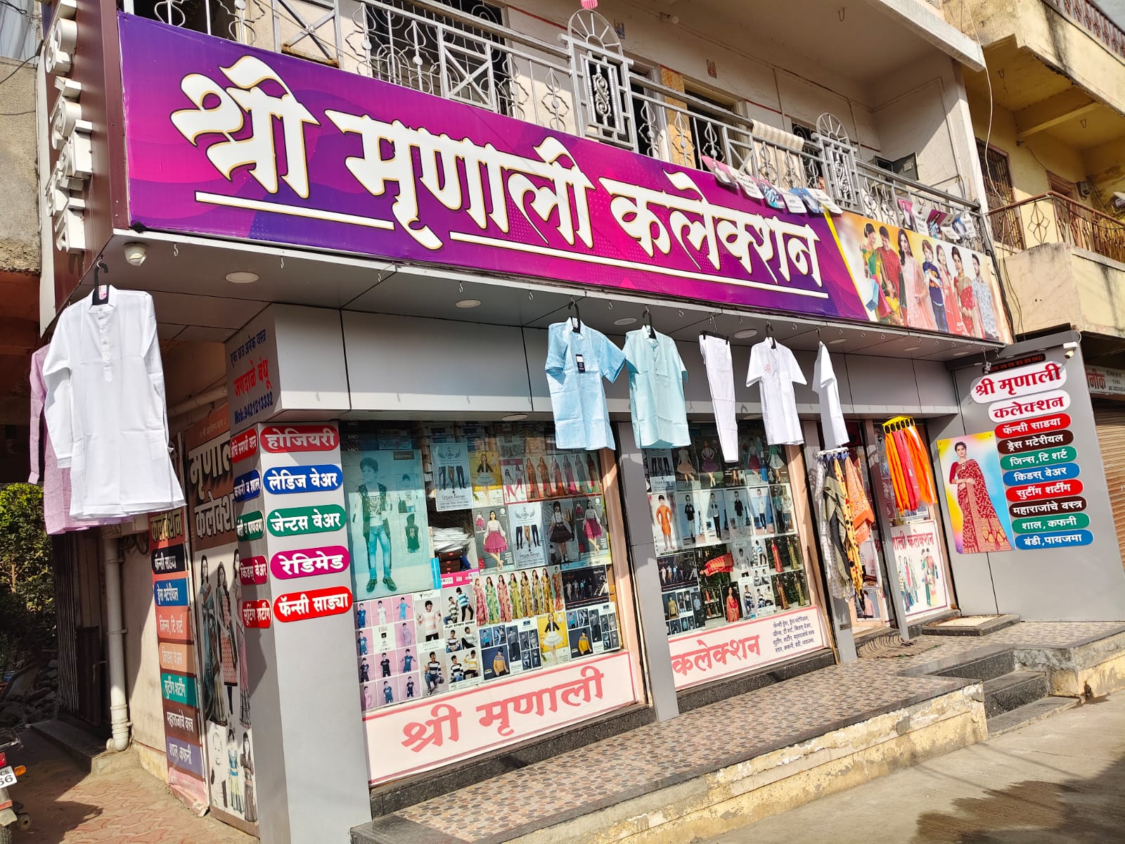🥻🥼👕👖👔साडी ड्रेस मटेरियल अंडरगारमेंट्स रेडीमेड शर्ट पॅन्ट लेडीज टॉवेल आणि इतर सर्व काही एकाच छताखाली. 👕👖👔 ब्रँडेड आणि क्वालिटी मटेरियल. 👕👖👔 सणासुदीच्या खास ऑफर्स आणि सवलतीच्या दरामध्ये उपलब्ध. 🥻🥼👕लेटेस्ट डिझाईन आणि भरपूर व्हरायटी. 🥻🥼👕 विनम्र आणि तत्पर सेवा गोंदवलेकर महाराजांच्या सेवेकरांचे ड्रेस बंडी पायजमा योग्य दरात मिळतील. 🥼👕👖जेन्ट्स, लेडीज अँड किड्स कलेक्शन- मग वाट कसली पाहताय? येताय ना मृणाली कलेक्शन गोंदवले बु.!! एक वेळ अवश्य भेट द्या. मृणाली कलेक्शन्स ला भेट अथवा संपर्क केल्याबद्दल धन्यवाद.