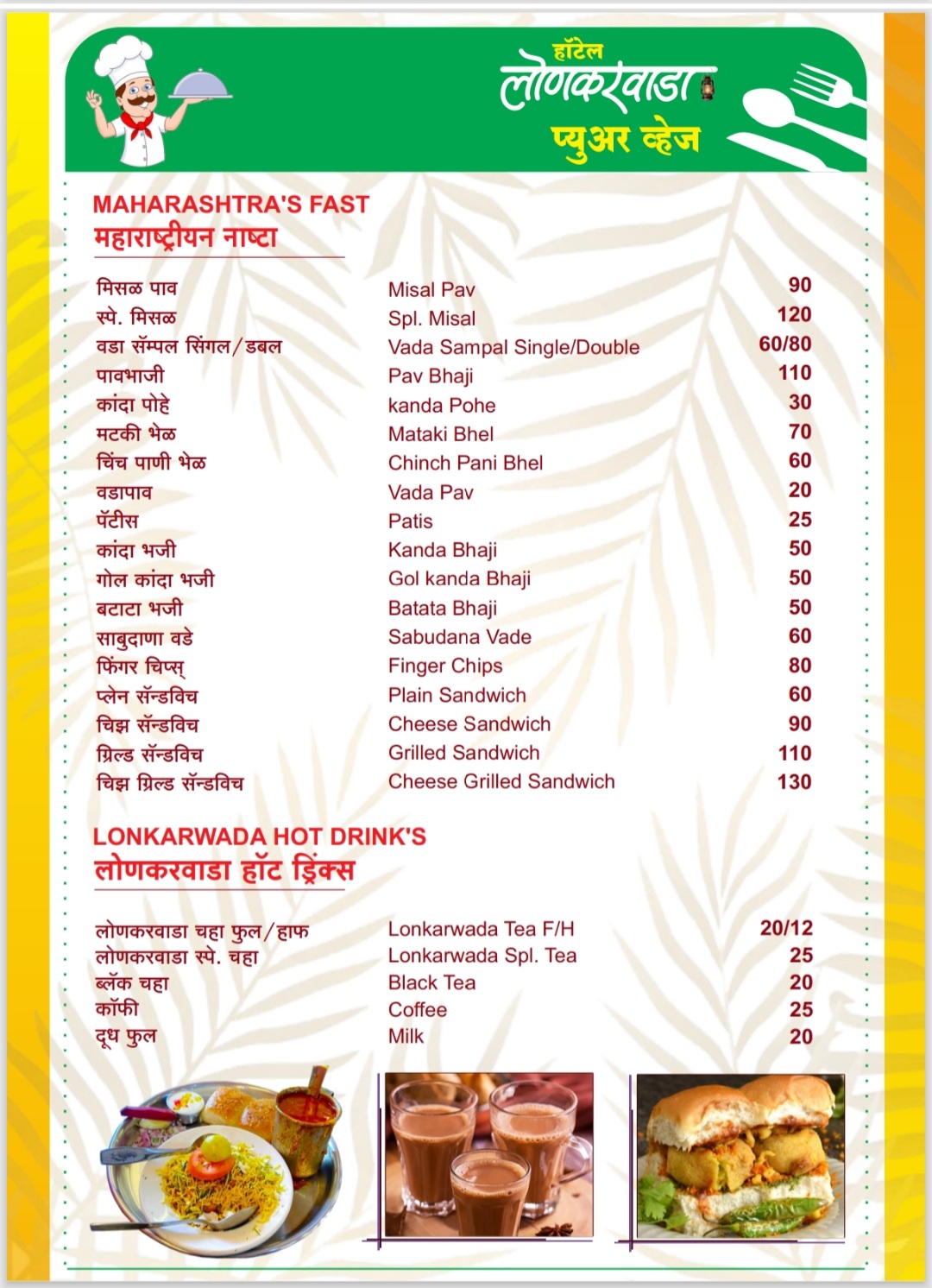 येथे महाराष्ट्रीयन, पंजाबी, साऊथ इंडियन, इंडो-चायनीज अशा अनेक पाककृतींची विस्तृत मेजवानी मिळते. प्रत्येक पदार्थ refined sunflower oil मध्ये स्वच्छतेने तयार केला जातो, ज्यामुळे चव आणि आरोग्य दोन्ही जपले जाते. आधुनिक सजावट, स्वच्छ वातावरण आणि तत्पर सेवा यामुळे लोणकरवाडा हे कुटुंब, मित्रमंडळी किंवा प्रवासादरम्यान जेवणासाठी उत्तम ठिकाण मानले जाते.