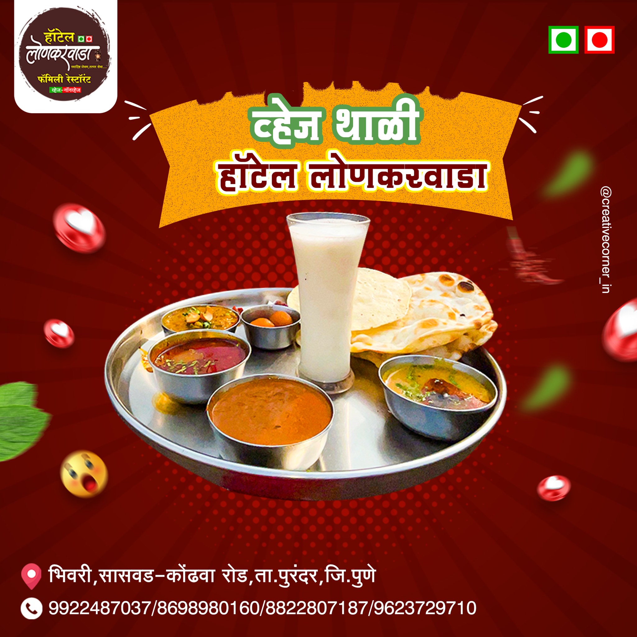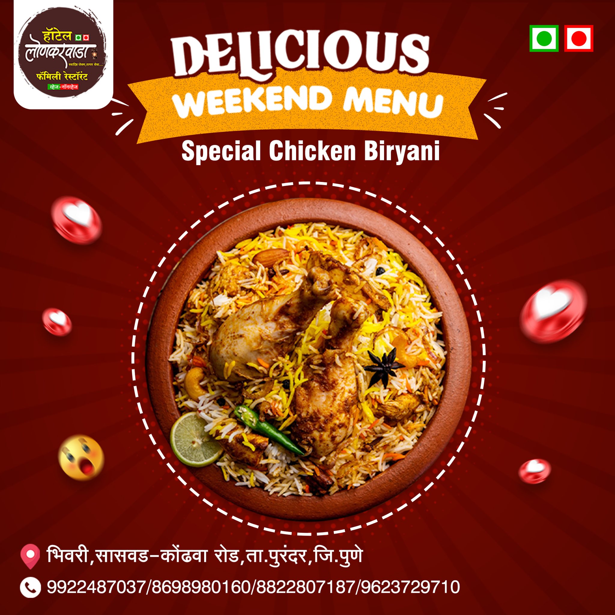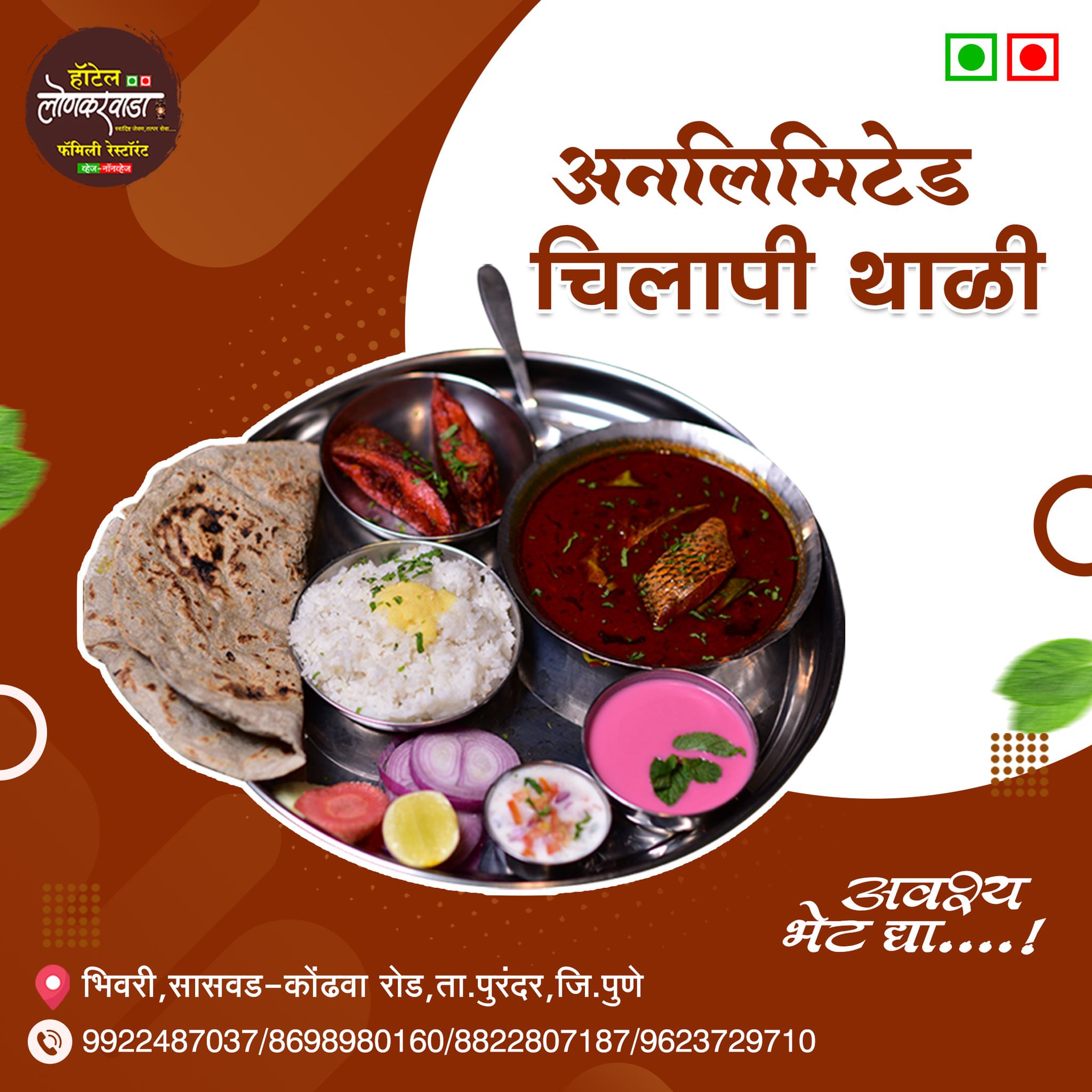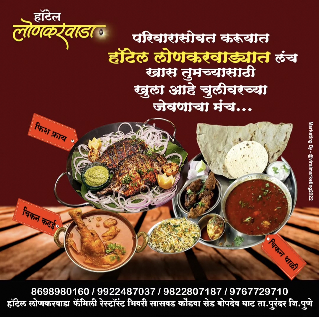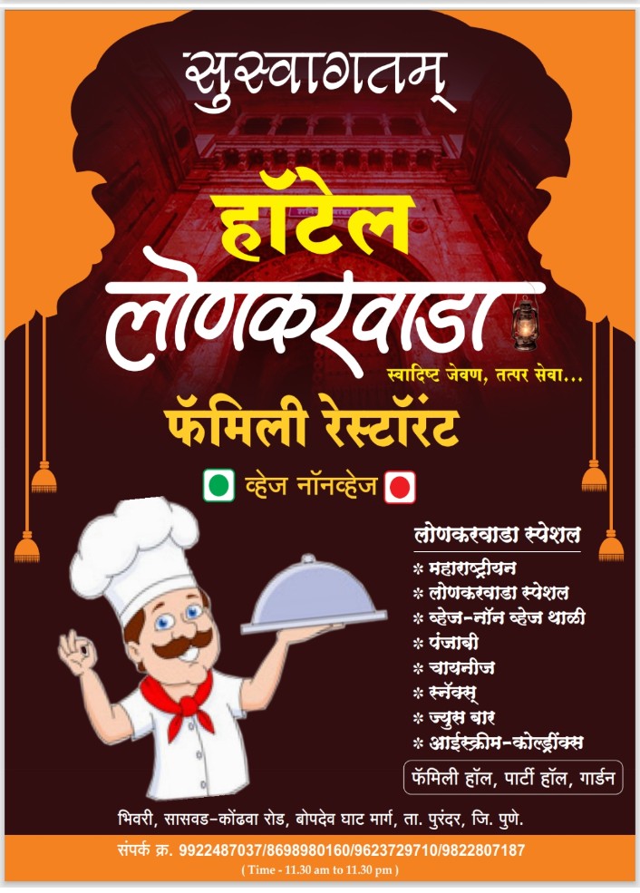 हॉटेल लोणकरवाडा हे भिवरी – सासवड–कोढवा रोडवरील एक लोकप्रिय व्हेज आणि नॉनव्हेज फॅमिली रेस्टॉरंट असून, उत्कृष्ट चव, स्वच्छता आणि ग्राहकाभिमुख सेवेमुळे हे ठिकाण स्थानिक आणि प्रवाशांमध्ये विशेष प्रसिद्ध आहे.