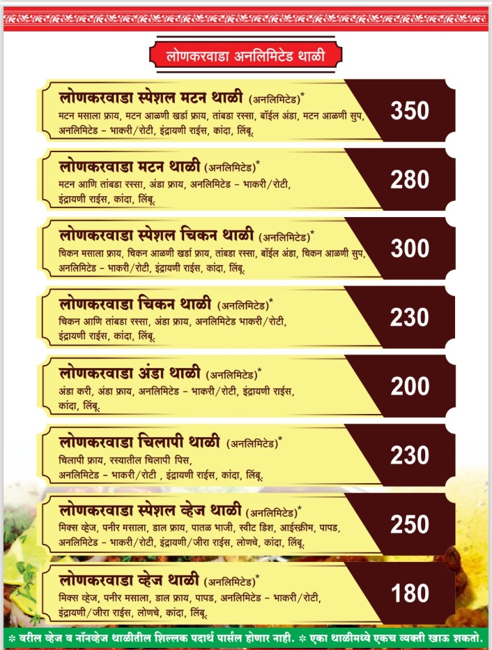 लोणकरवाडा प्रत्येकासाठी सहज जुळणारे वातावरण आणि आरामदायी बसण्याची सुविधा देतो. त्यामुळे प्रवासादरम्यान थांबण्यासाठी किंवा आठवड्यातील आरामदायी जेवणासाठी हे एक विश्वासाने निवडले जाणारे ठिकाण बनले आहे. येथे उपलब्ध विविध थाळ्या, खास नॉनव्हेज डिशेस, सिग्नेचर बिर्याणी, क्रिस्पी स्टार्टर आणि फिश स्पेशल पदार्थ हे लोणकरवाडा वेगळेपणा ग्राहकांपर्यंत पोहोचवतात.